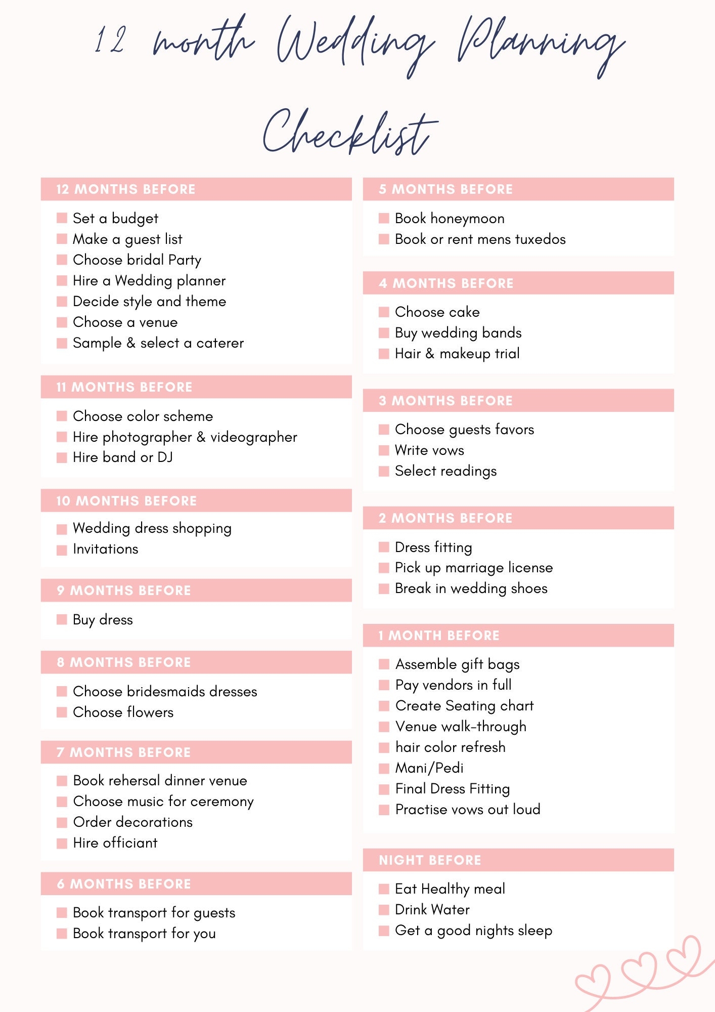 Download and Print 12 Month Wedding Planning Checklist Printable