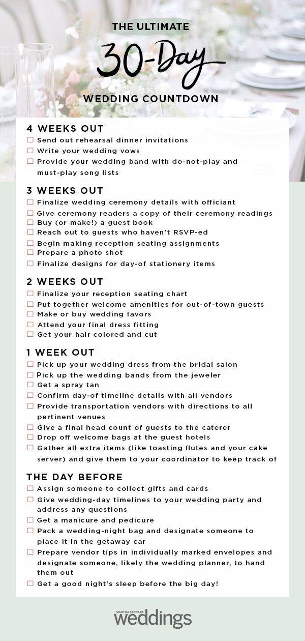 30 Day Wedding Checklist Printable
