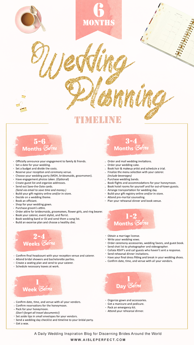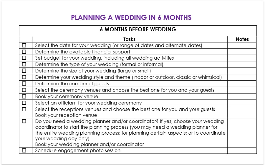 Planning A Wedding In 6 Months Wedding Checklist Printable