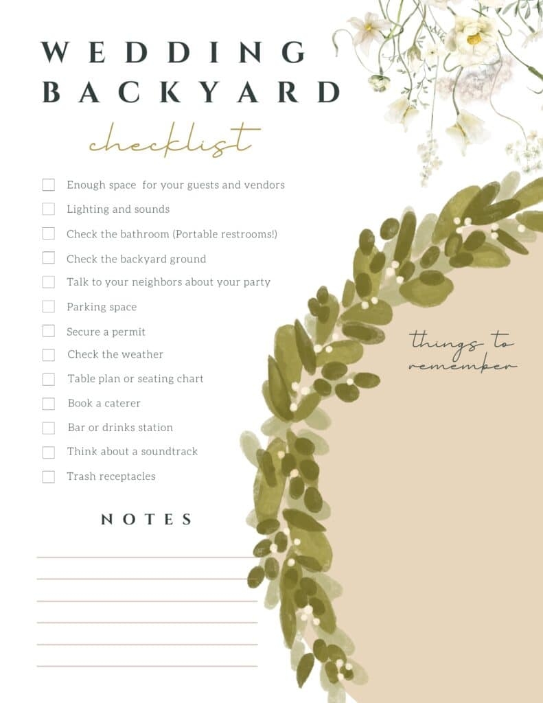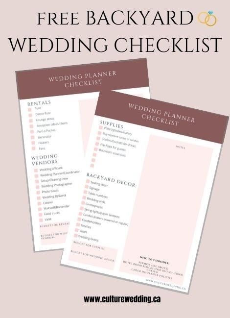 Backyard Wedding Checklist Printable