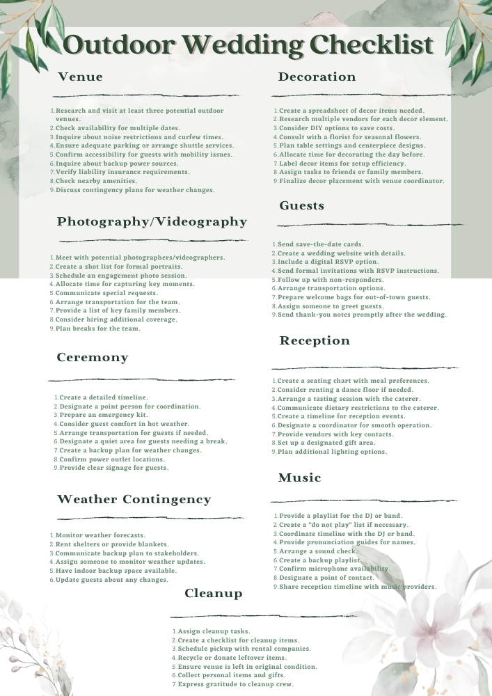 Printable Backyard Wedding Checklist