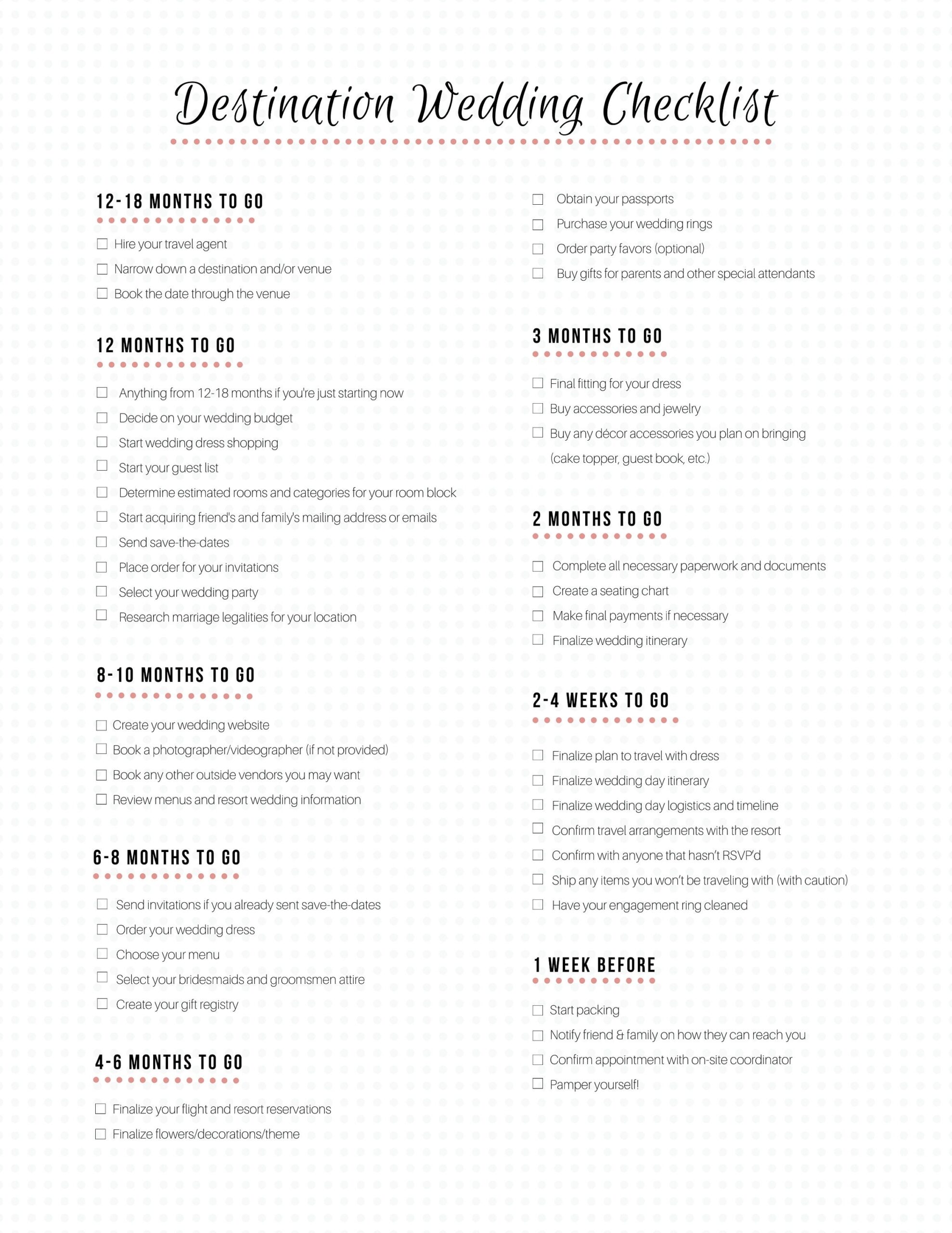 The Best Destination Wedding Checklist Destination Wedding Details