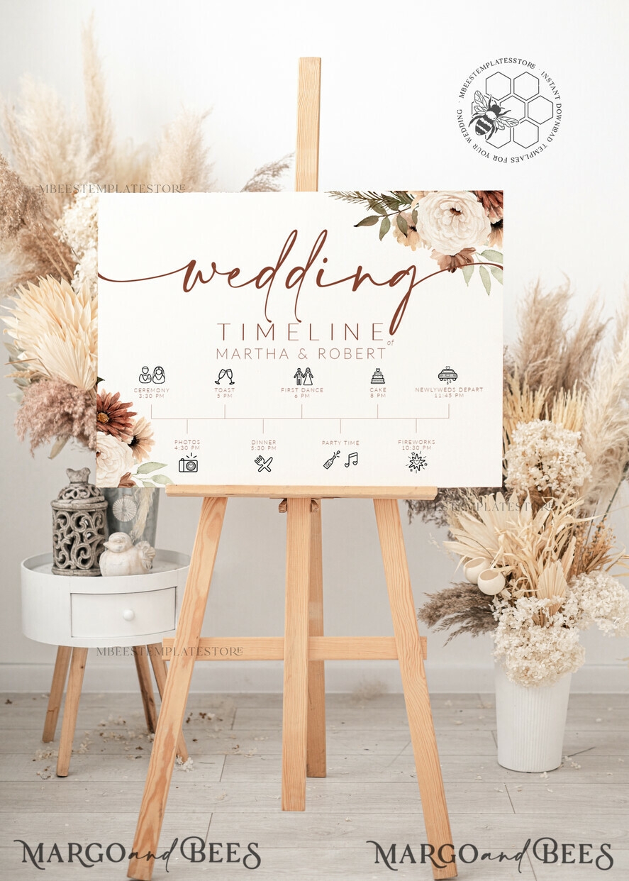 Boho Wedding Order Of Events Timeline Sign Template Fall Order Of Events Timeline Sign Printable Timeline DIY Wedding Sign WBoho10 10 Boho TL