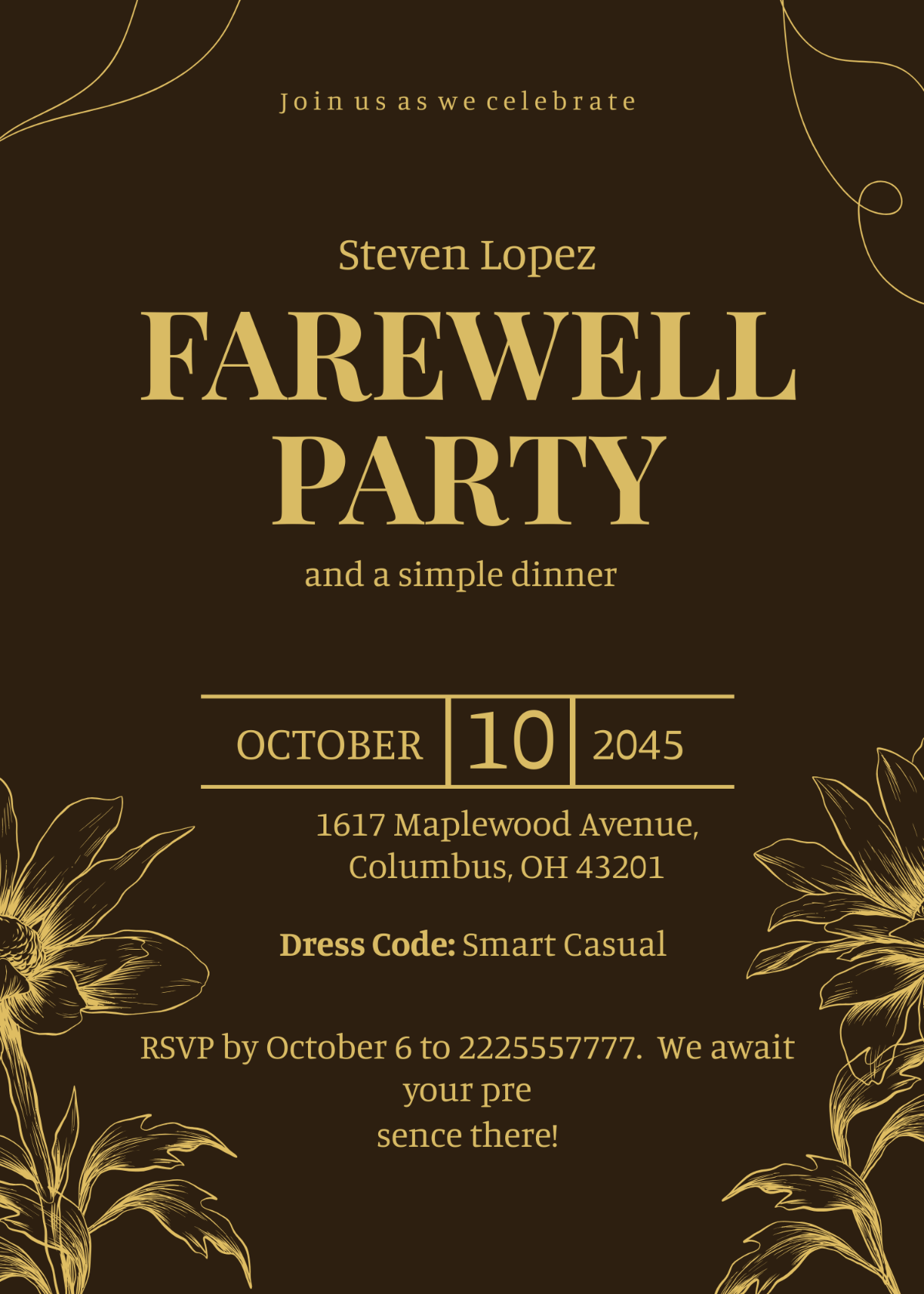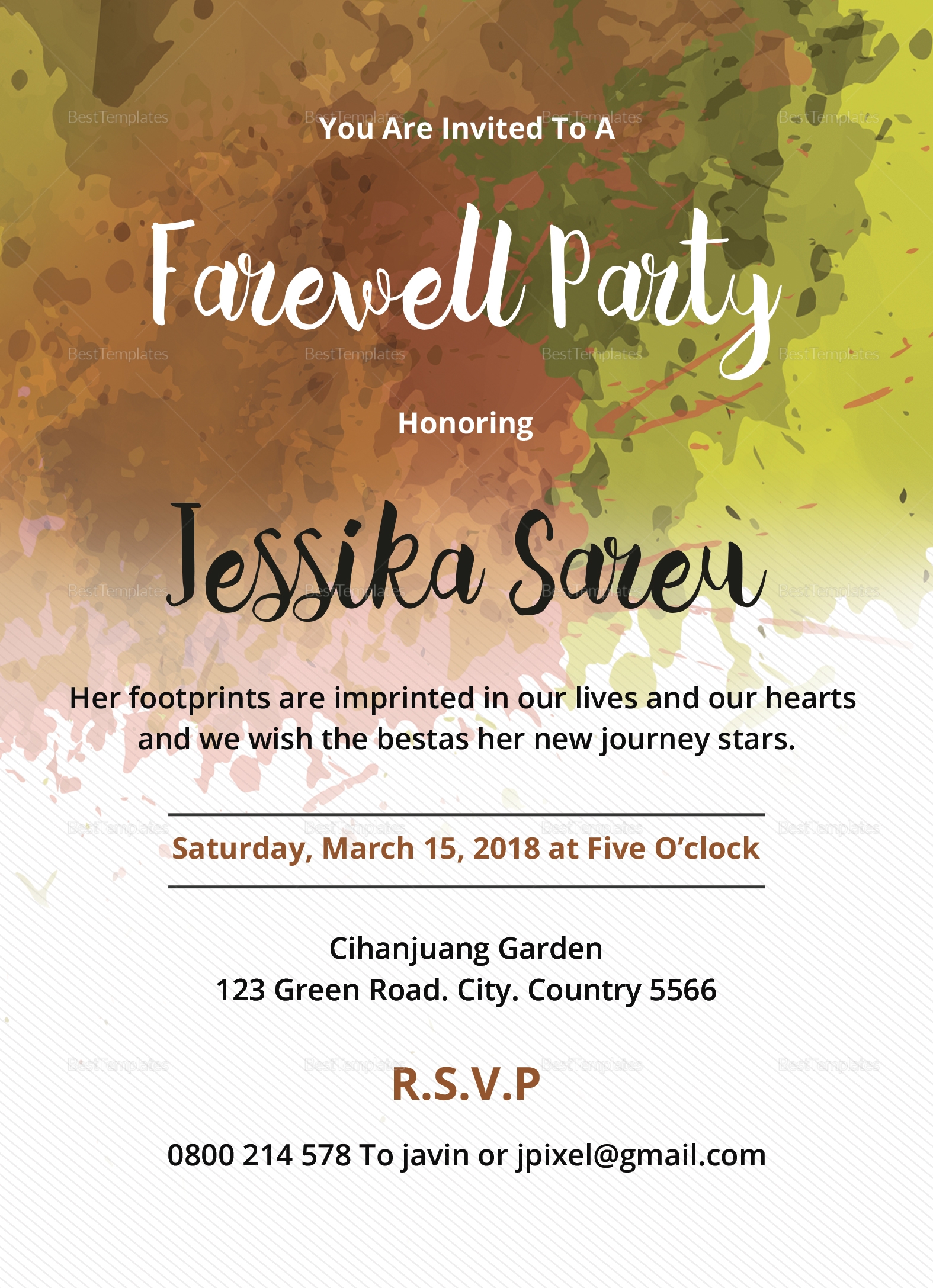 When creating a farewell invitation template, consider including the following elements: