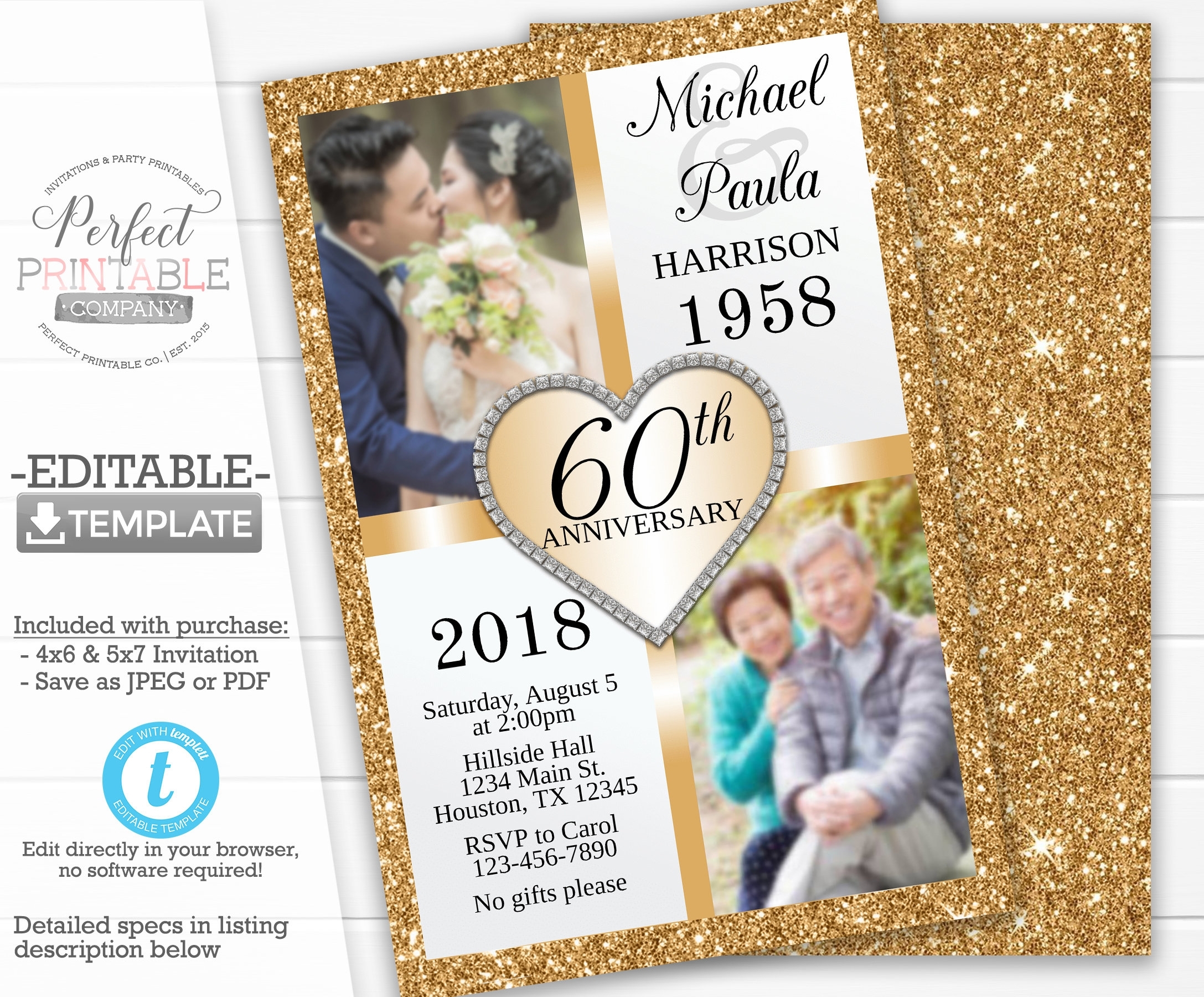 60th Wedding Anniversary Party Invitation Instant Dow Vrogue co60th Wedding Anniversary Party Invitation Instant Dow Vrogue Co