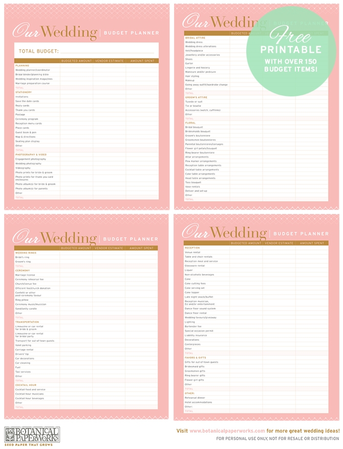 free Printables Wedding Budget Planner Botanical PaperWorksFree Printable Wedding Budget Planner