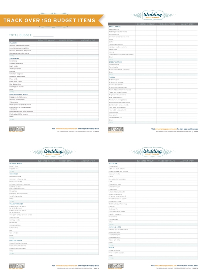free Printable Wedding Budget Planner Botanical PaperWorksFree Printable Wedding Budget Planner Botanical PaperWorks