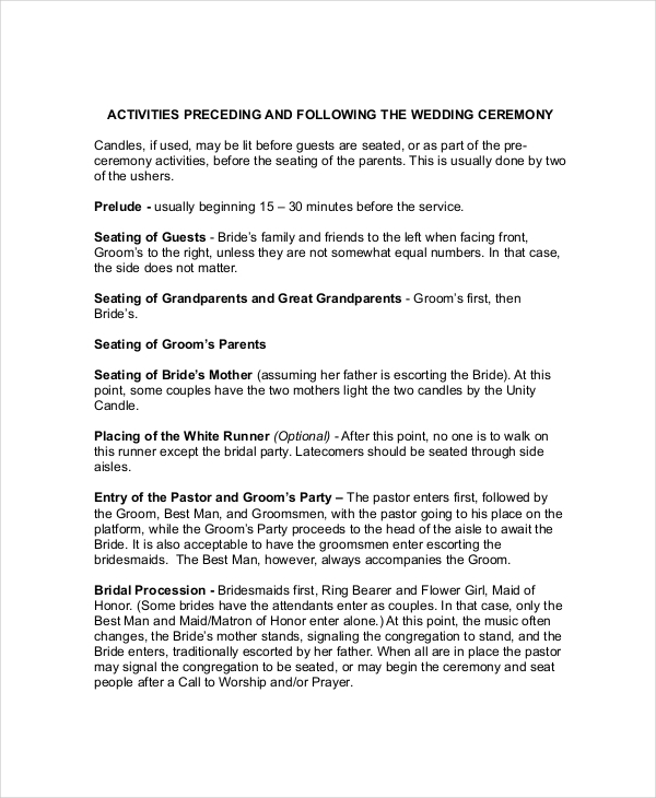 23 Wedding Ceremony Templates Free Sample Example Format Download