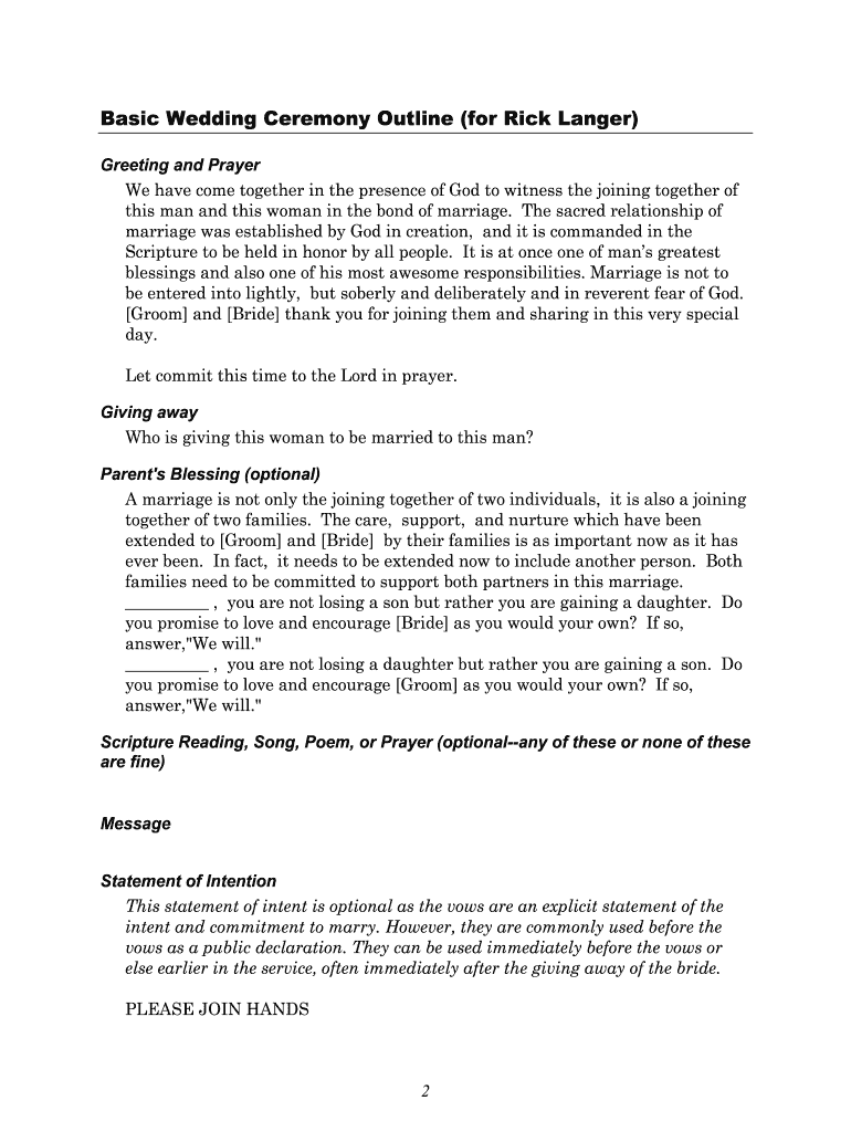 Wedding Ceremony Outline Template