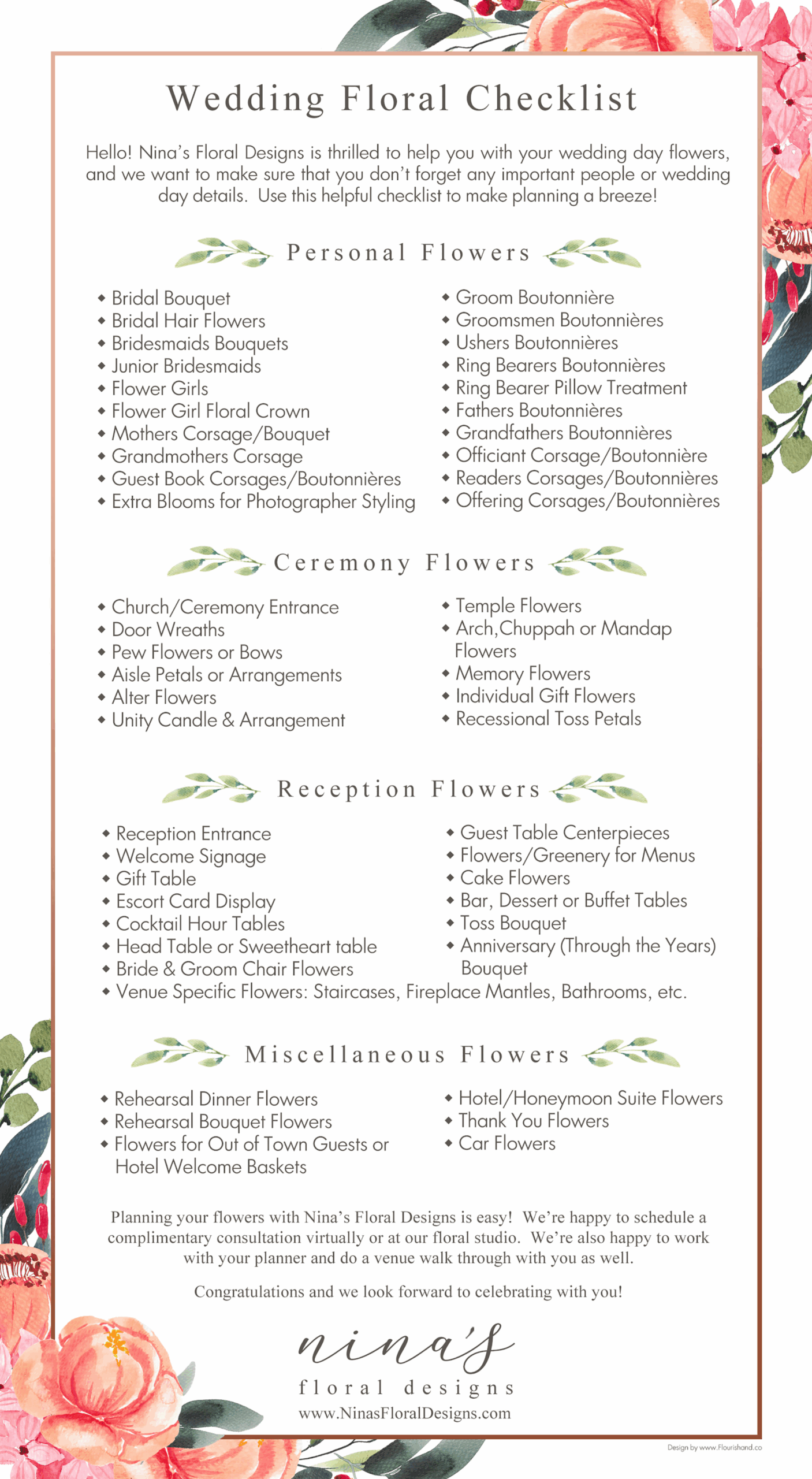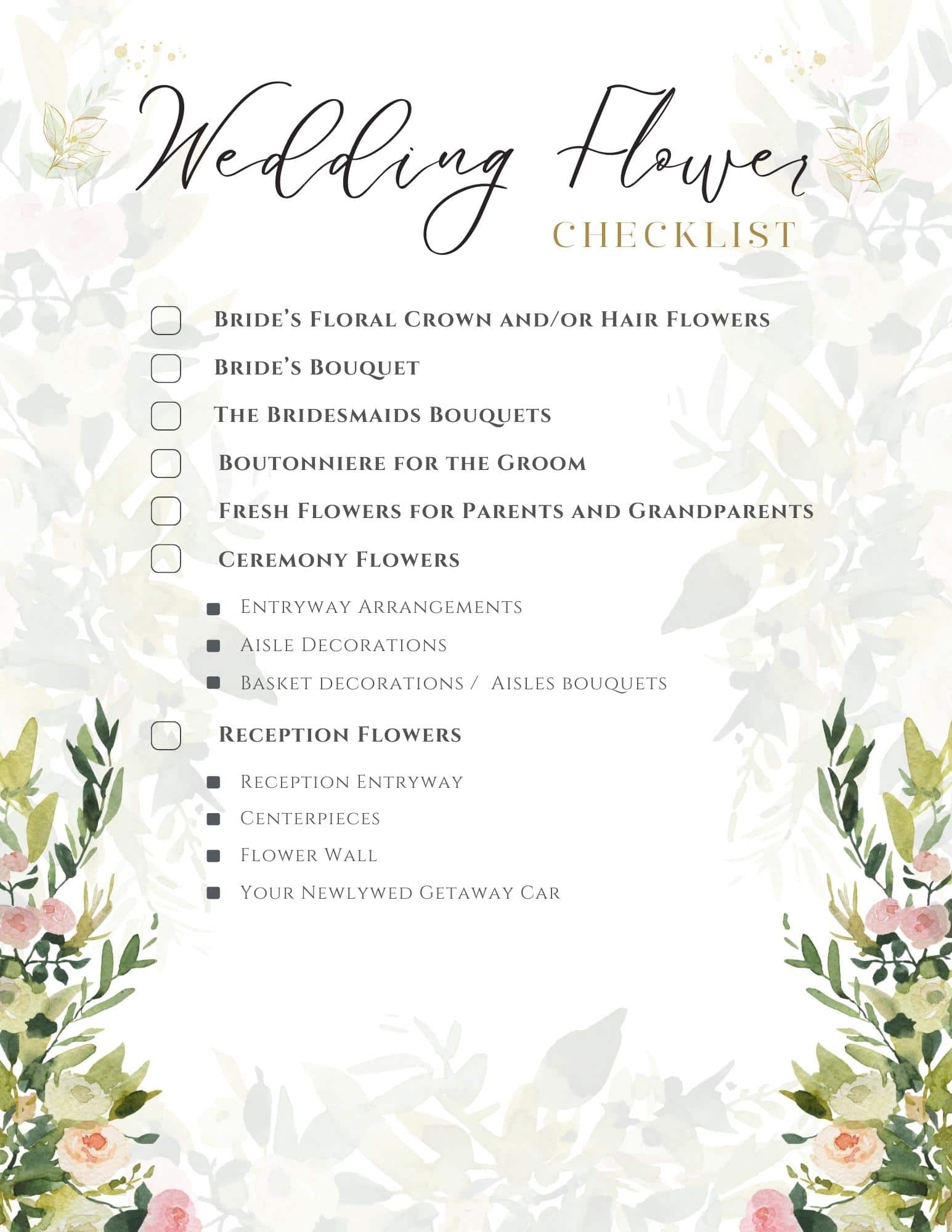 Whether you’re having a small intimate gathering or a lavish celebration, having a wedding flower checklist can help keep you organized and ensure that you don’t overlook any important details. To make your wedding planning process a little easier, we have created a free printable wedding flower checklist that you can use as a guide.