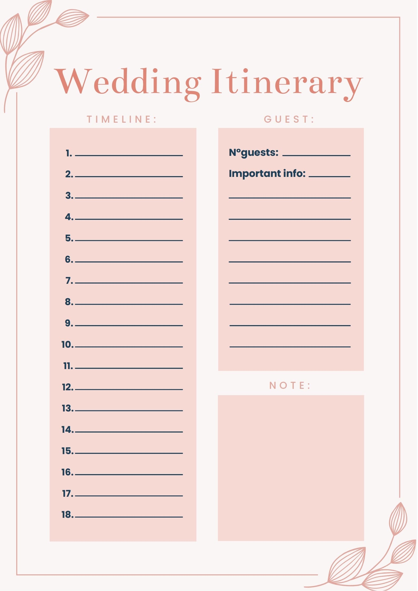Save and Print Free Printable Wedding Itinerary Templates