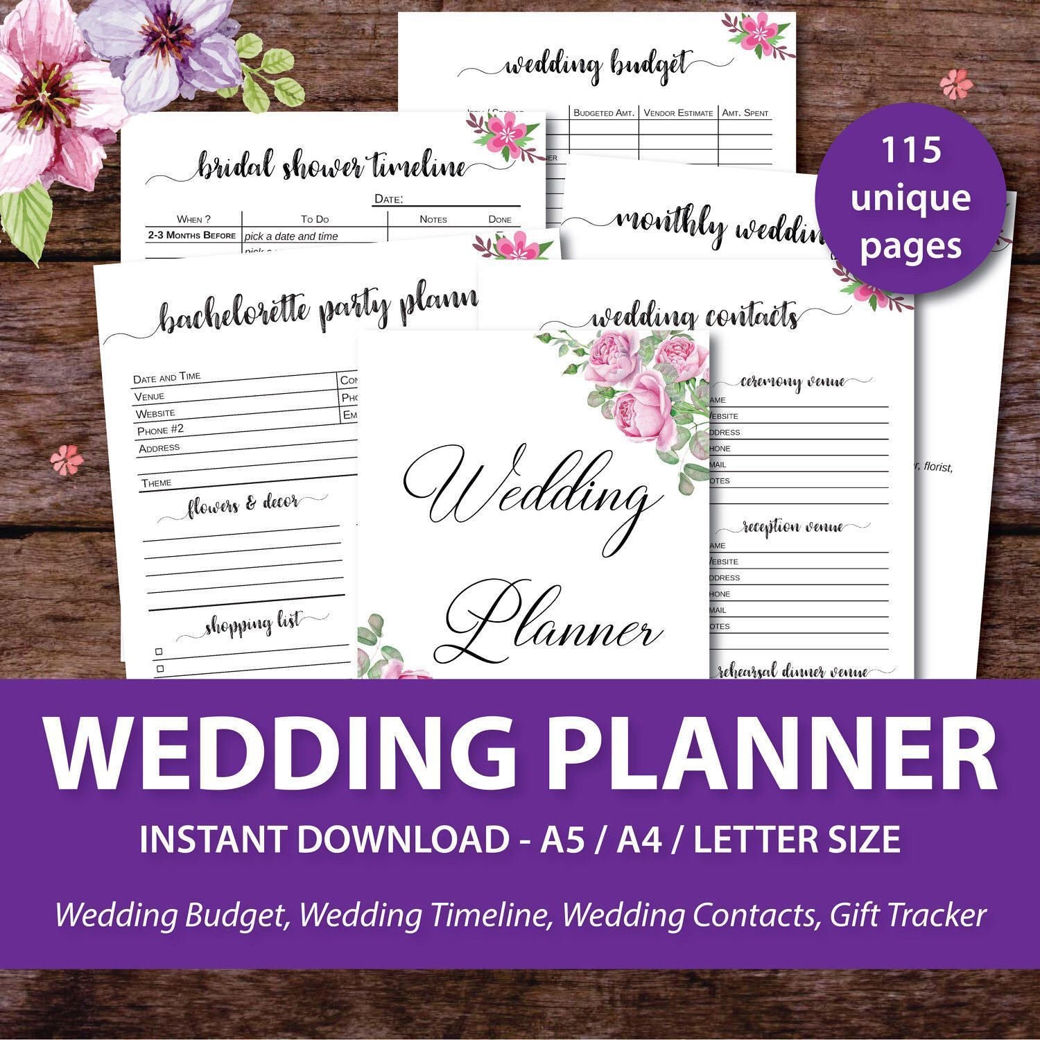 Wedding Planner 19 Printable Pages Instant Downloadable Etsy In 2021