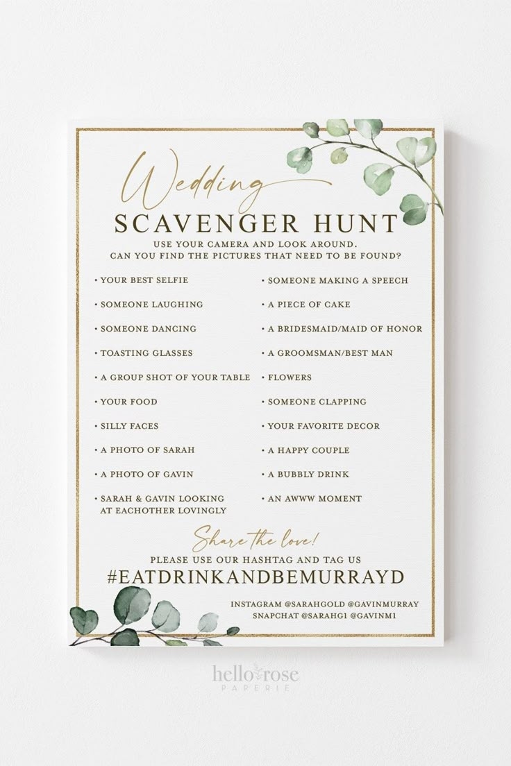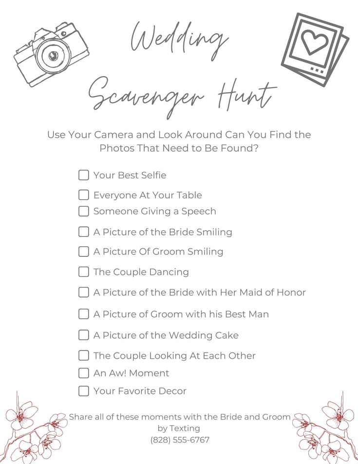 So why not consider incorporating a free printable wedding scavenger hunt into your big day? It’s a simple and affordable way to add some extra fun and excitement to your wedding celebration while also creating lasting memories that you and your guests will cherish for years to come.