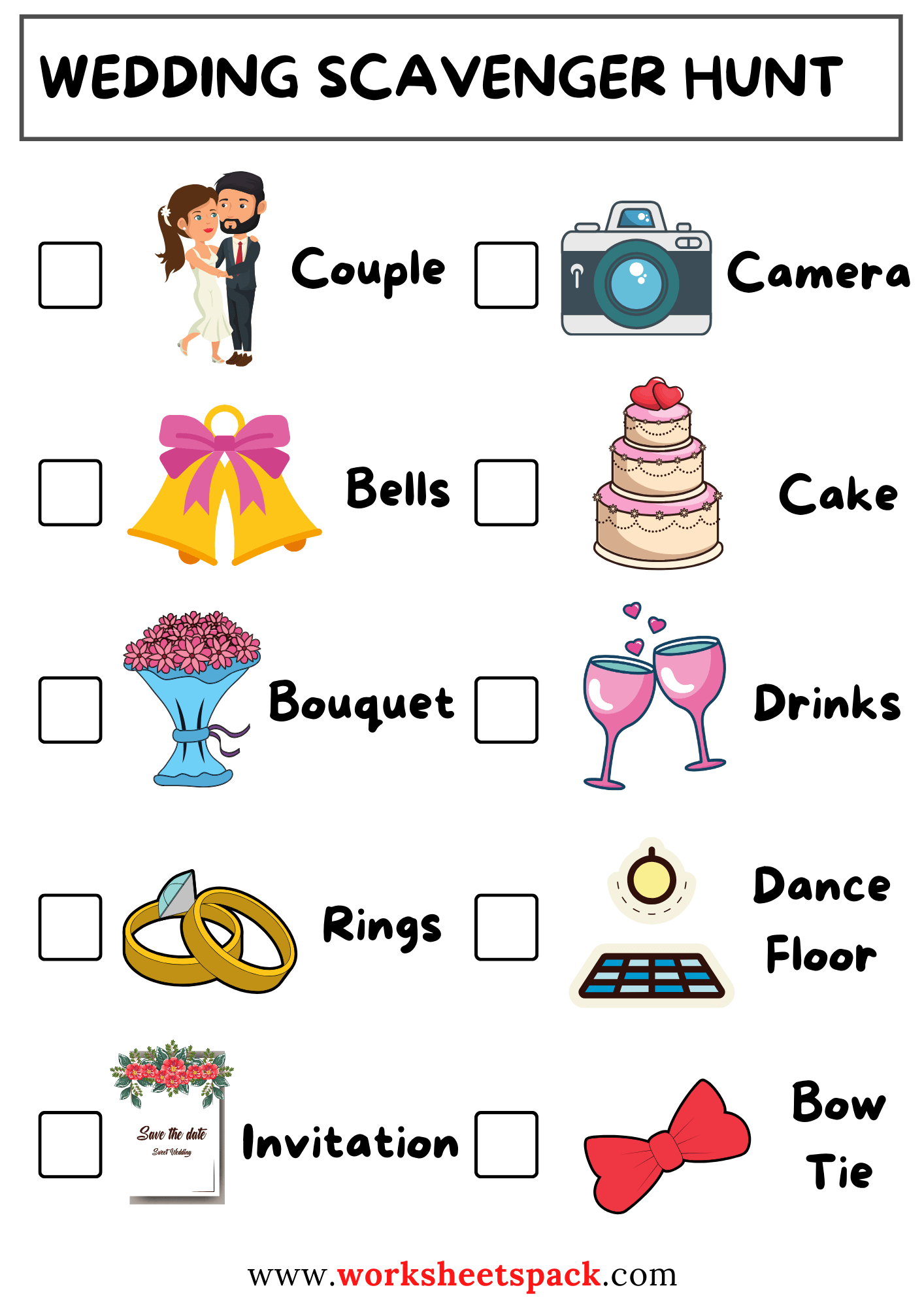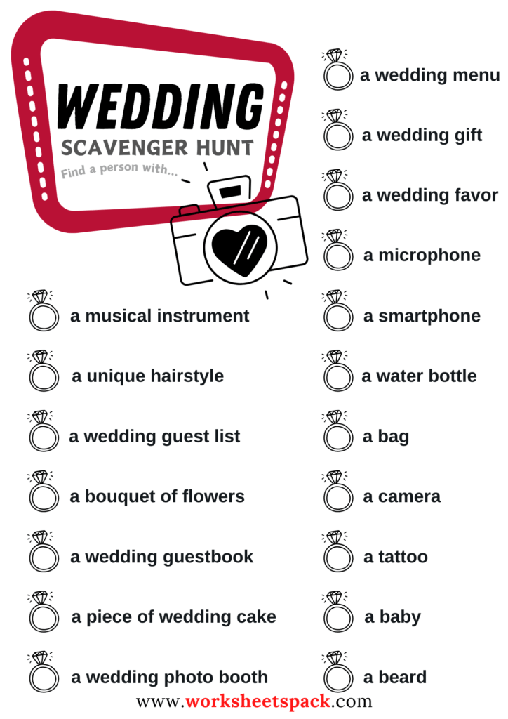 Unique Wedding Scavenger Hunt Ideas Worksheetspack
