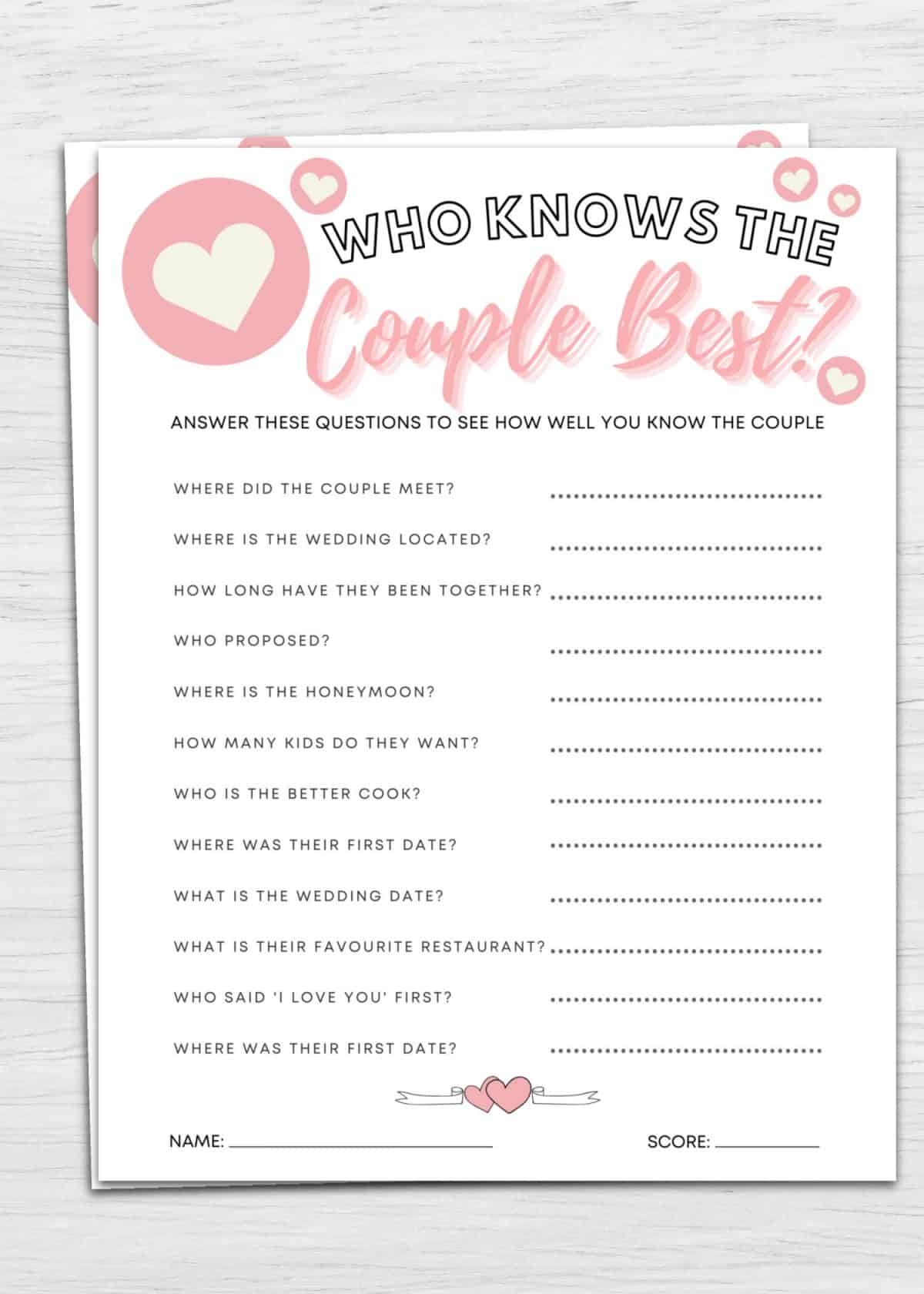 Who Knows The Couple Best Printable Bridal Shower Game