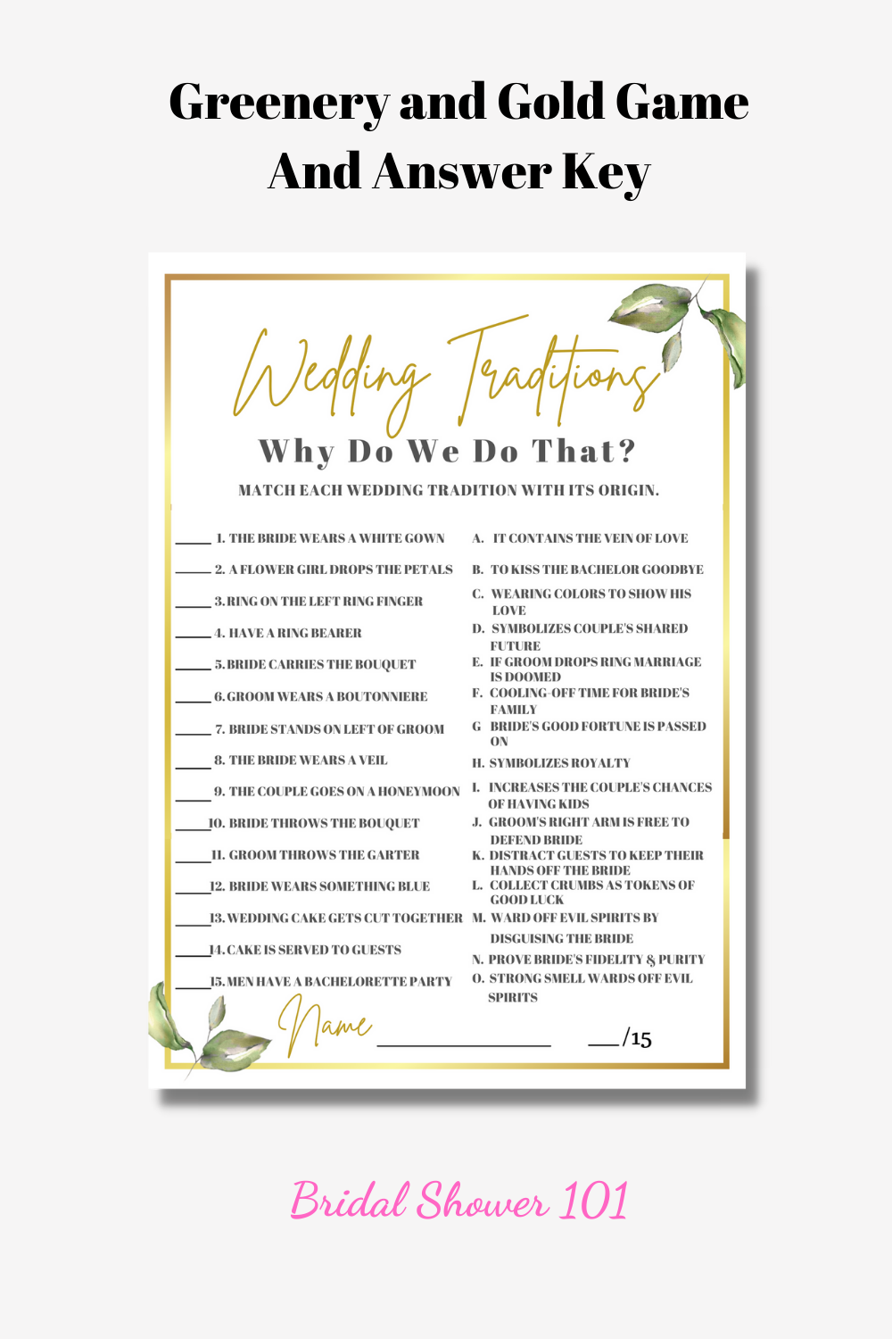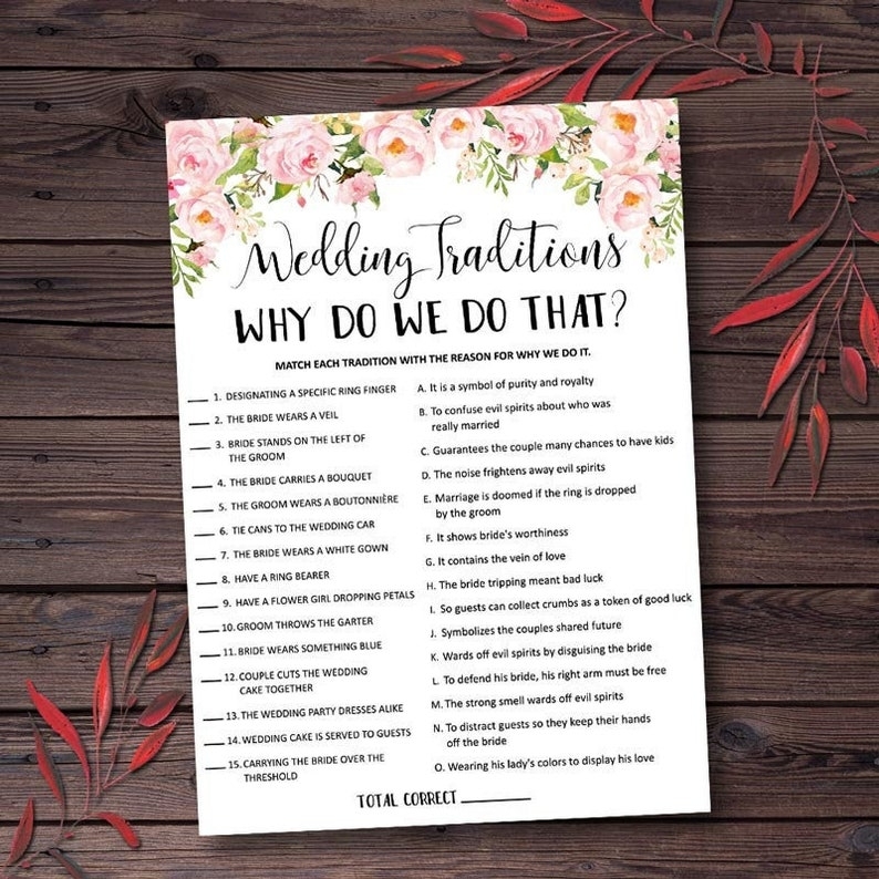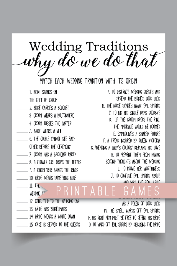 Wedding Traditions Guessing Game Printable Why Do We Do That Bridal