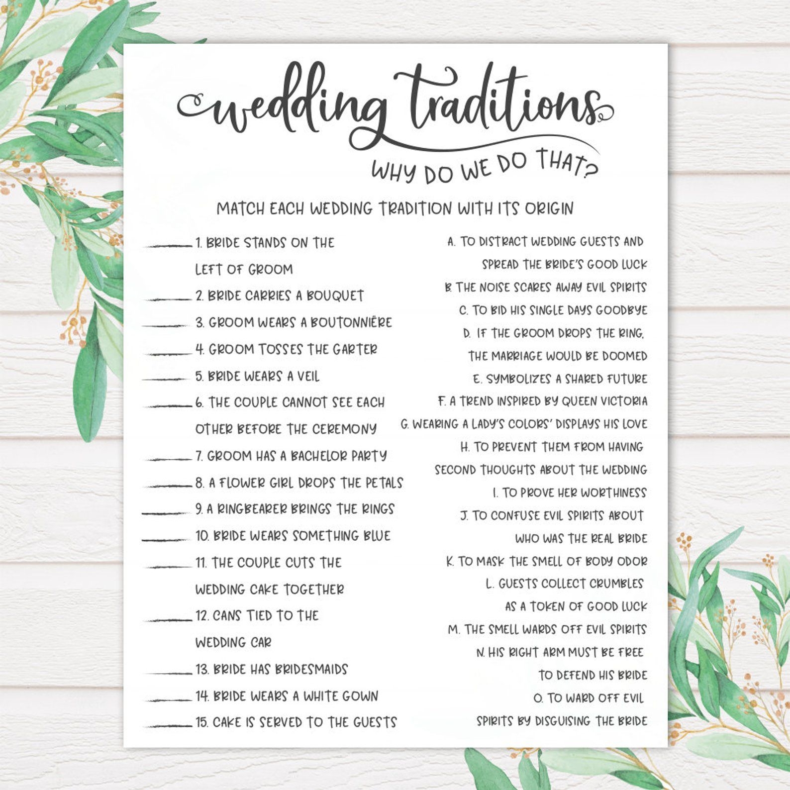 Grey Wedding Traditions Guessing Game Printable Why Do We Do Etsy