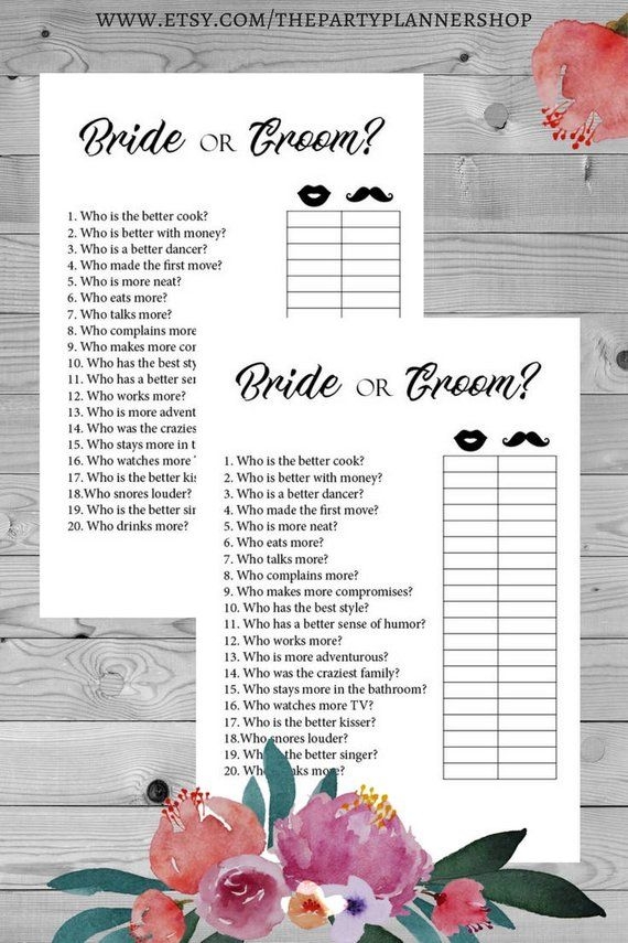 Bride Or Groom Wedding Game Printable Wedding Reception Game Etsy Free Wedding Game Printables