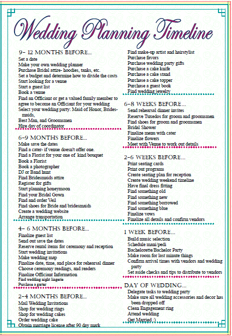 Printable Wedding Timeline Printable By ClassyPrintsOnline