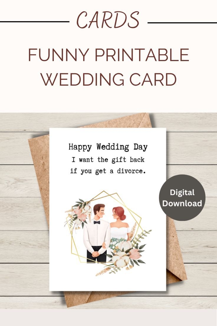 For those who prefer a more subtle approach to humor, there are printable funny wedding cards that feature elegant designs with a touch of sarcasm or irony. These cards are perfect for couples who appreciate a good laugh but still want to maintain a sense of sophistication on their wedding day. Whether it’s a clever play on words or a sly reference to the couple’s quirks, these cards are sure to bring a smile to the faces of everyone who sees them.