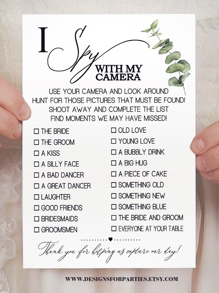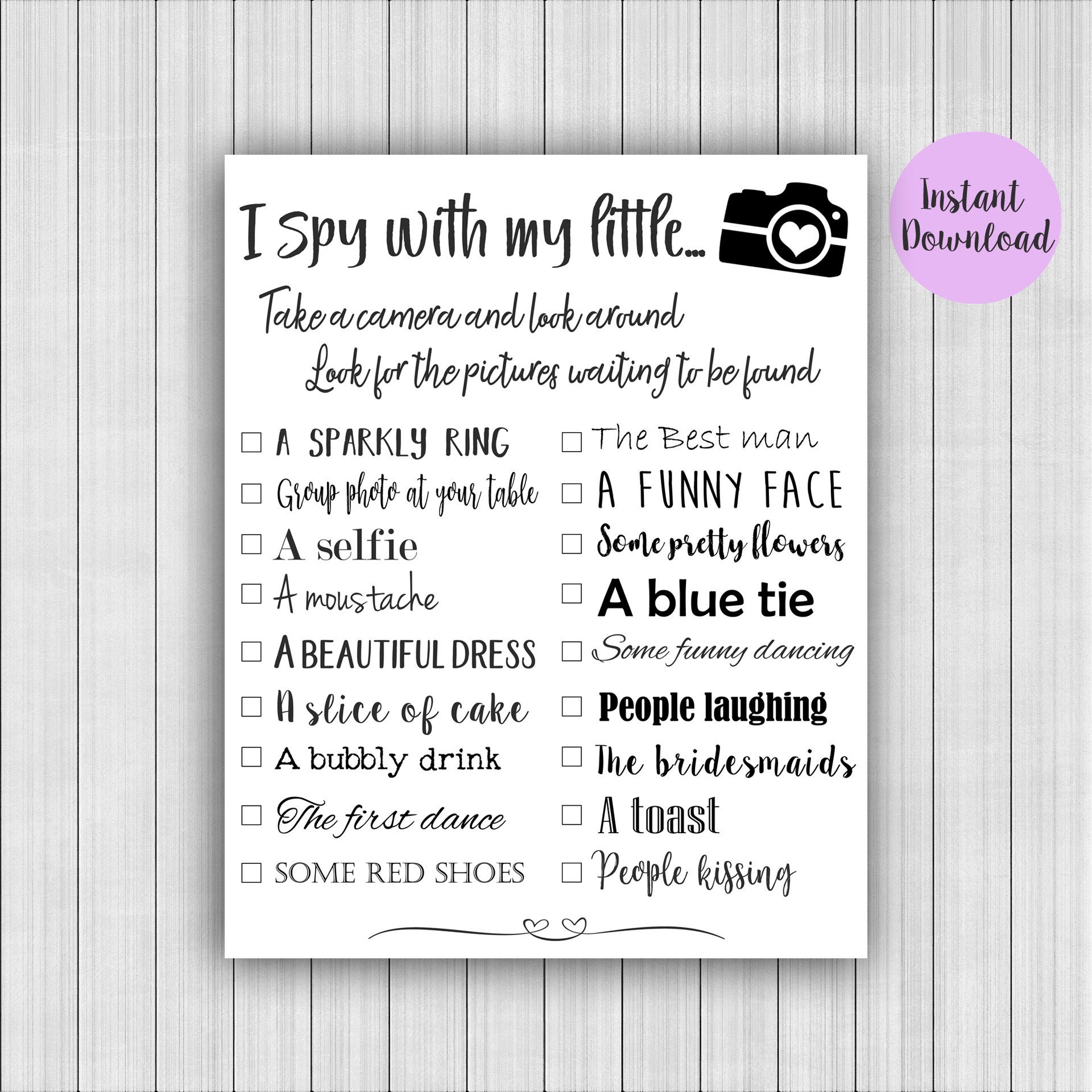 Weddings are a time for celebration, love, and creating memories that will last a lifetime. One fun way to get your guests involved and make sure those memories are captured is by incorporating games into your special day. One popular game that is perfect for weddings is the “I Spy” game. This game encourages guests to interact with each other, explore the venue, and take photos of specific moments throughout the day. And the best part? You can provide your guests with a free printable version of the game to make it even easier for them to participate!