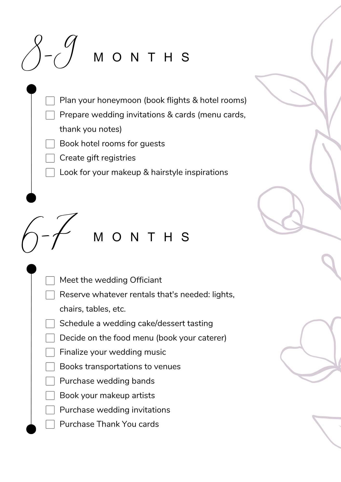 Here is a breakdown of what you can expect from a month by month wedding checklist printable: