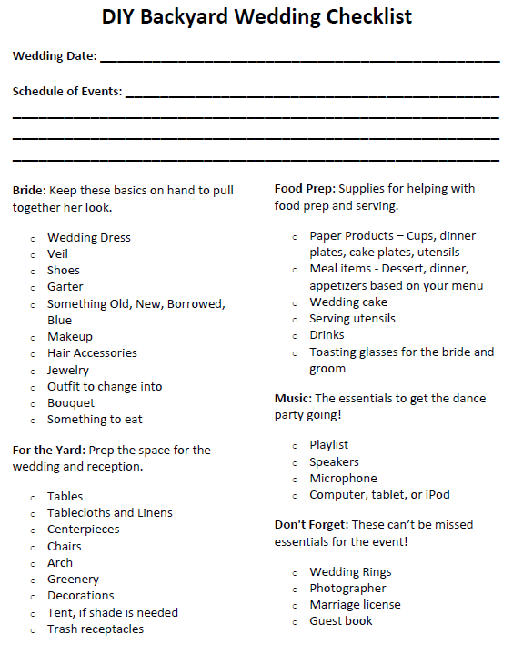 DIY Backyard Wedding Checklist Useful Planning Guide Worksheets Library