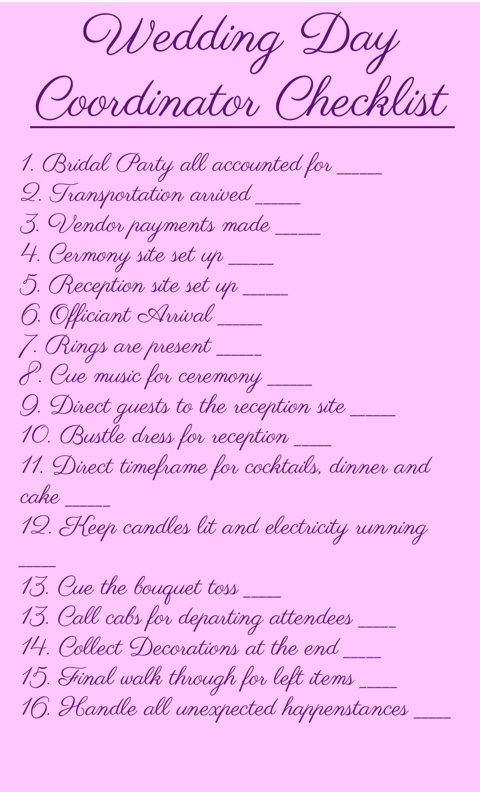 Printable Day Of Wedding Coordinator ChecklistPrintable Day Of Wedding Coordinator Checklist
