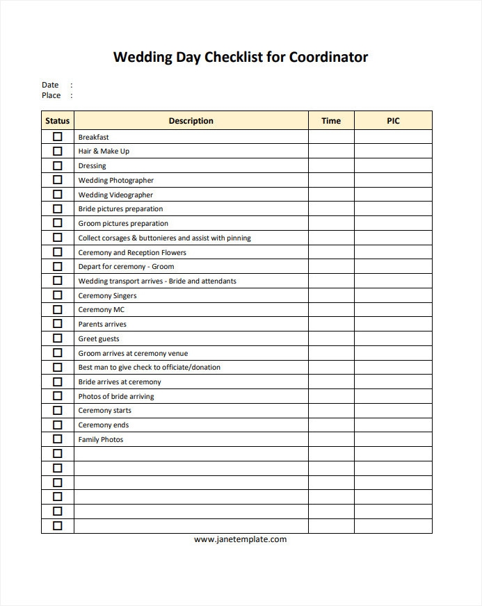 Wedding Day Checklist Template For CoordinatorWedding Day Checklist Template For Coordinator