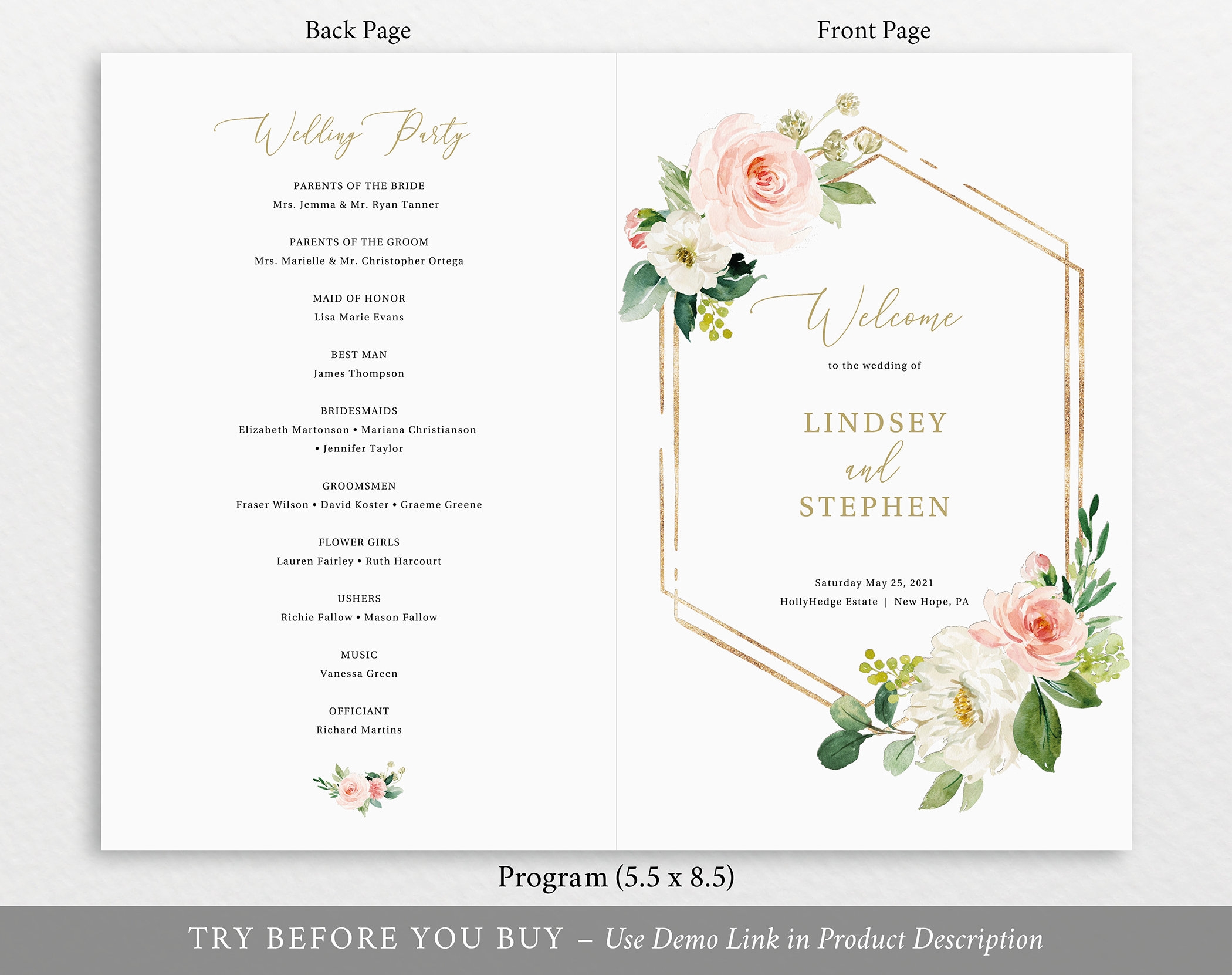 Overall, printable downloadable wedding program templates are a great option for couples who want a beautiful and personalized program without the high cost and hassle. With a wide range of designs and styles available online, you’re sure to find the perfect template to suit your needs.