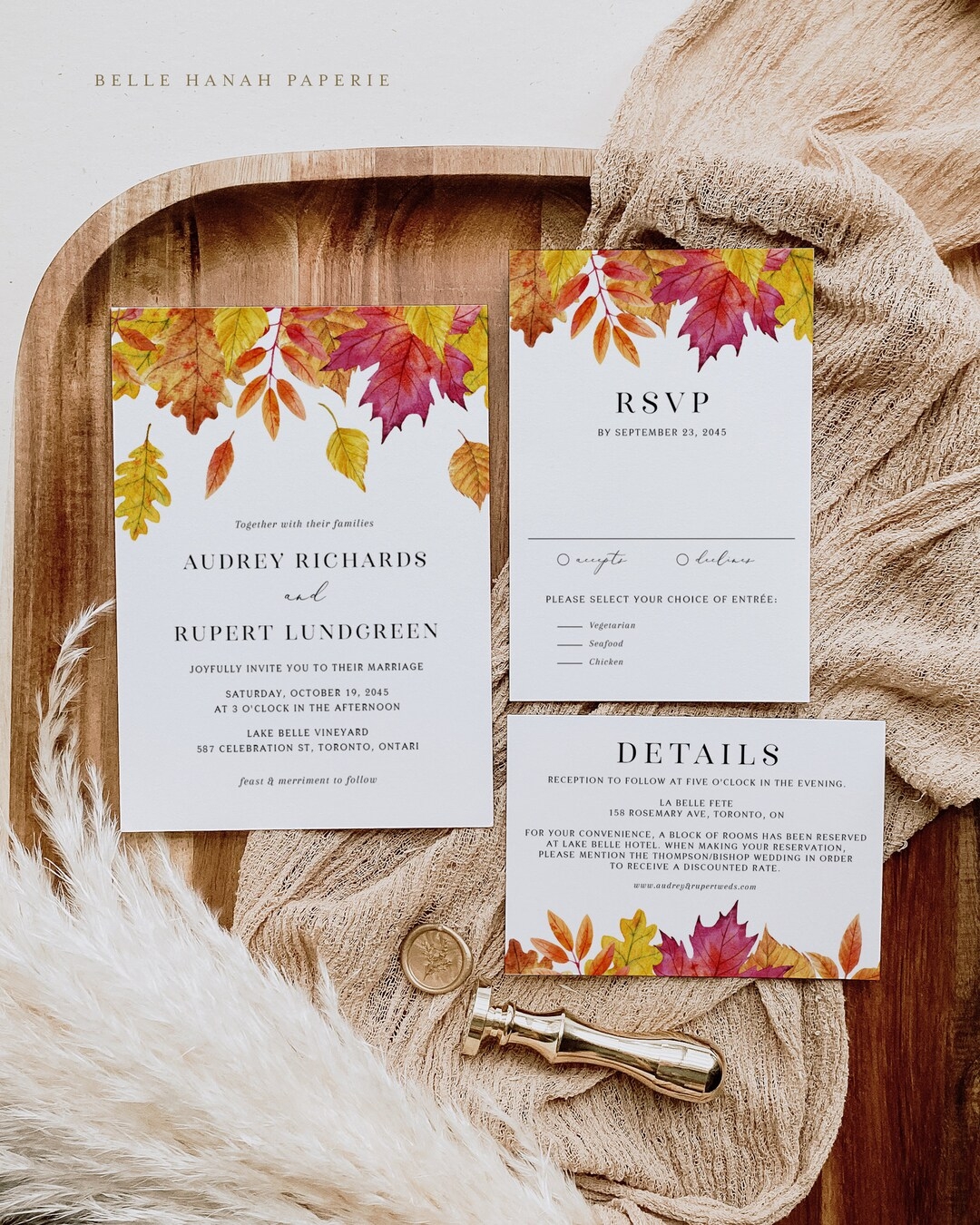 Printable wedding invitations are a convenient and cost-effective option for couples who want to add a personal touch to their wedding stationery. With a variety of designs and styles available online, you can easily find the perfect fall-themed invitation to match your wedding aesthetic.