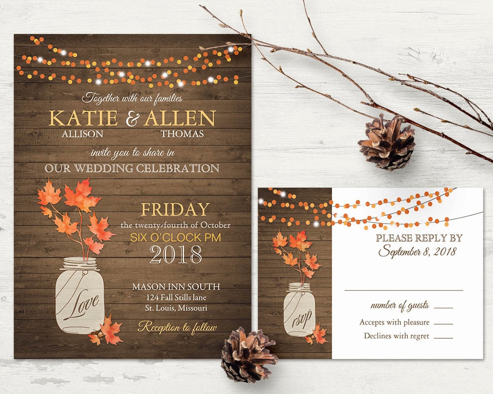 Autumn Wedding Invitation Template Printable Wedding Invitation Fall
