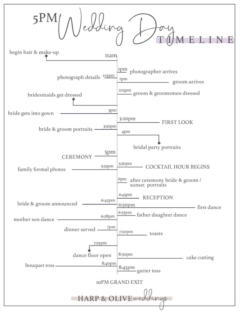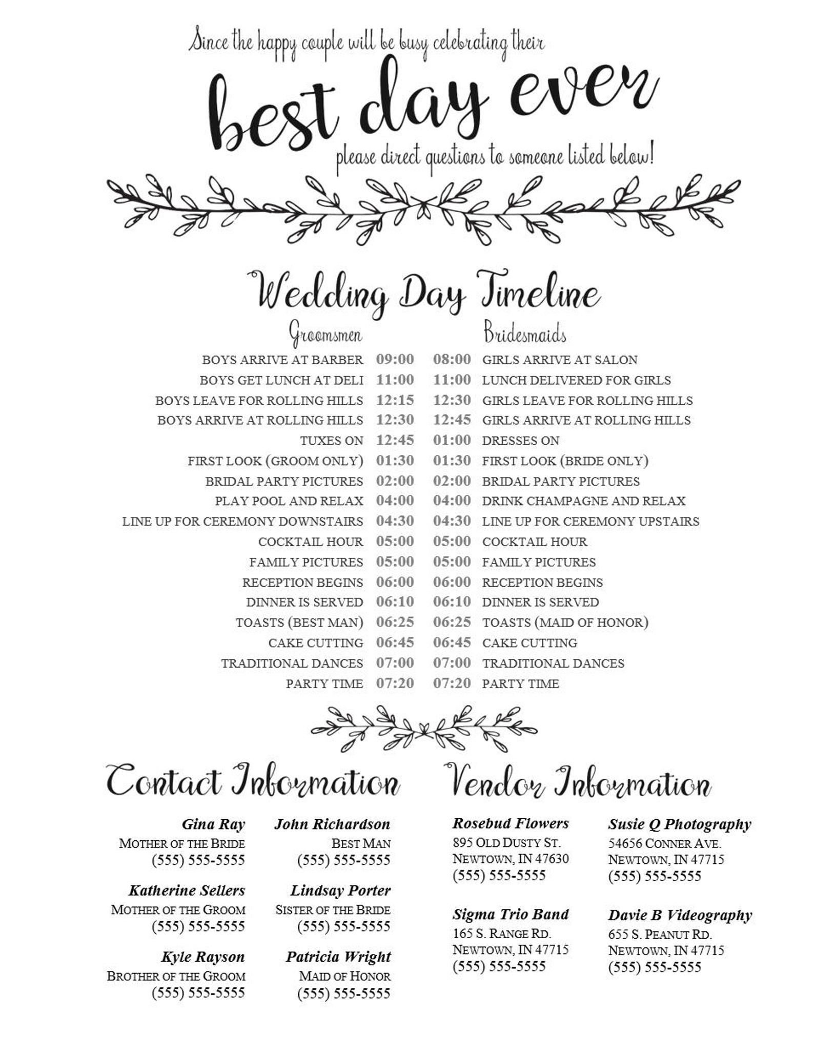 Wedding Day Timeline Sample 3 Printable Wedding Day Timelines