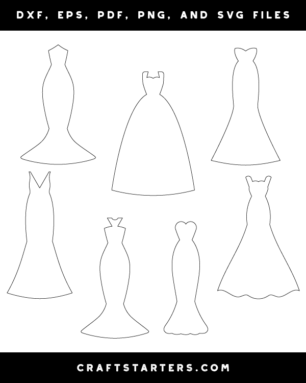 Wedding Dress Outline Patterns DFX EPS PDF PNG And SVG Cut Files