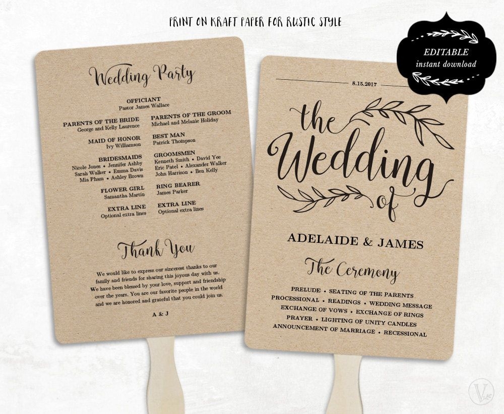 Printable Wedding Program Template Fan Wedding By VineWedding Diy