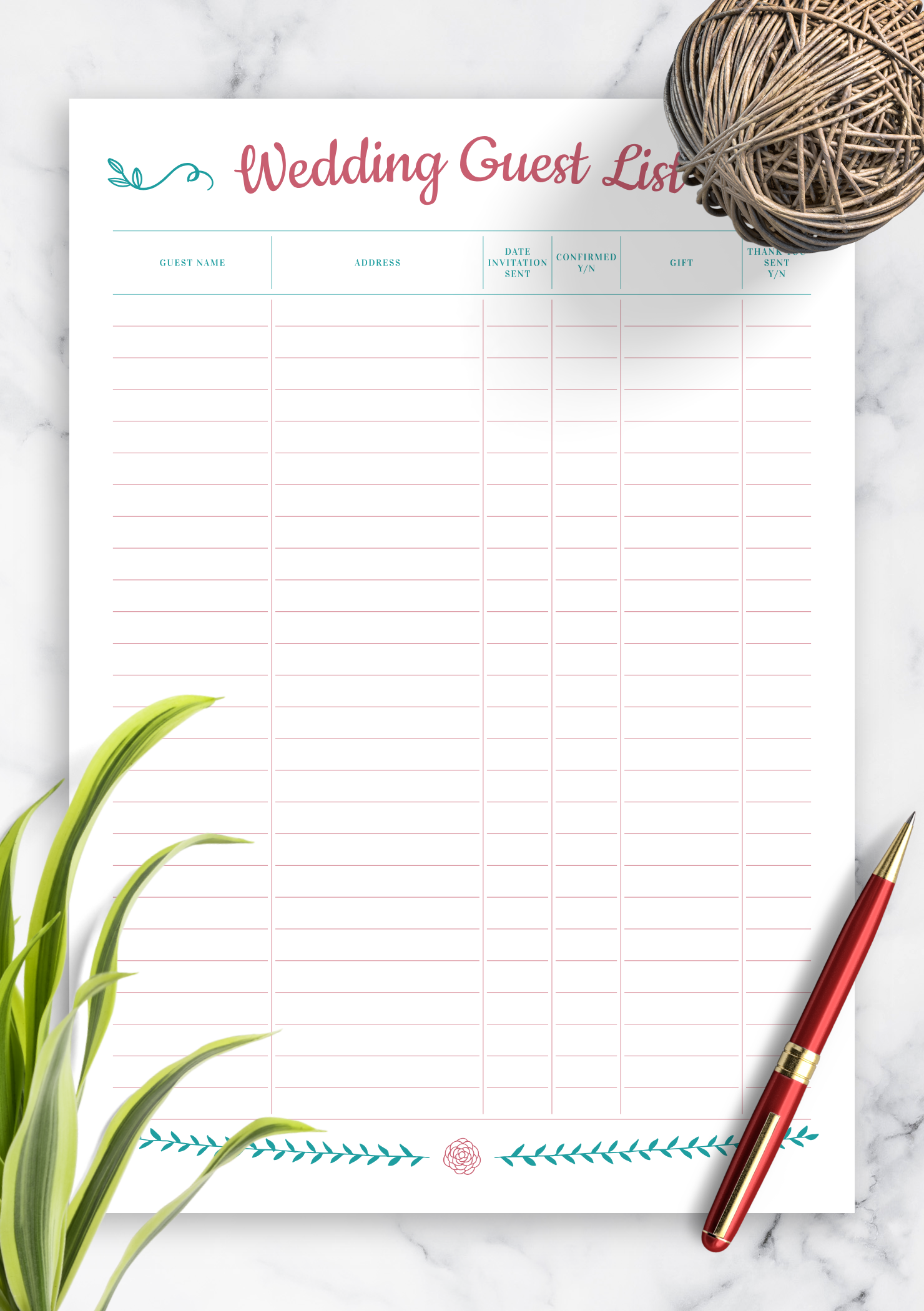 Download Printable Wedding Guest List Romantic Style PDF