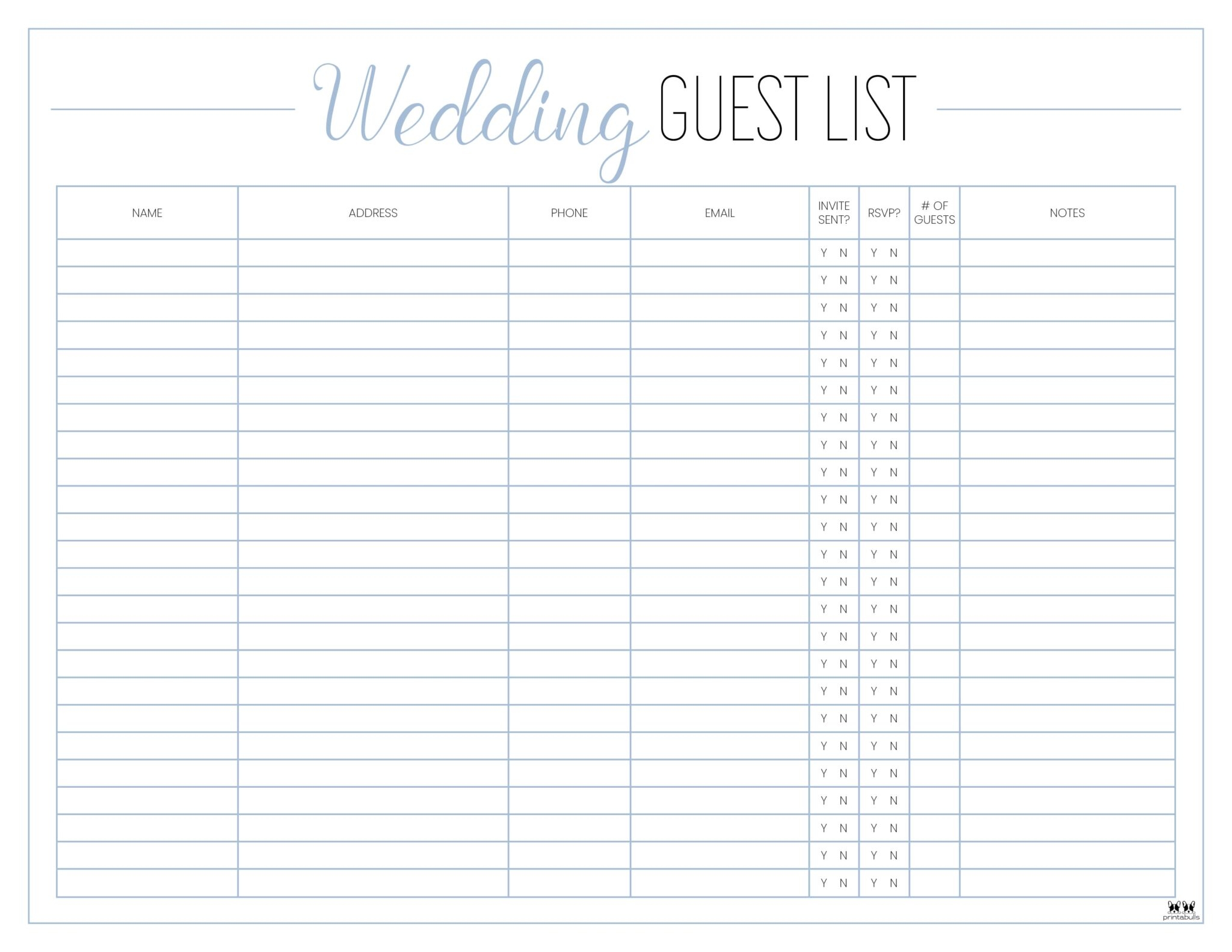 Wedding Guest List Templates 20 FREE Lists PrintaBulk