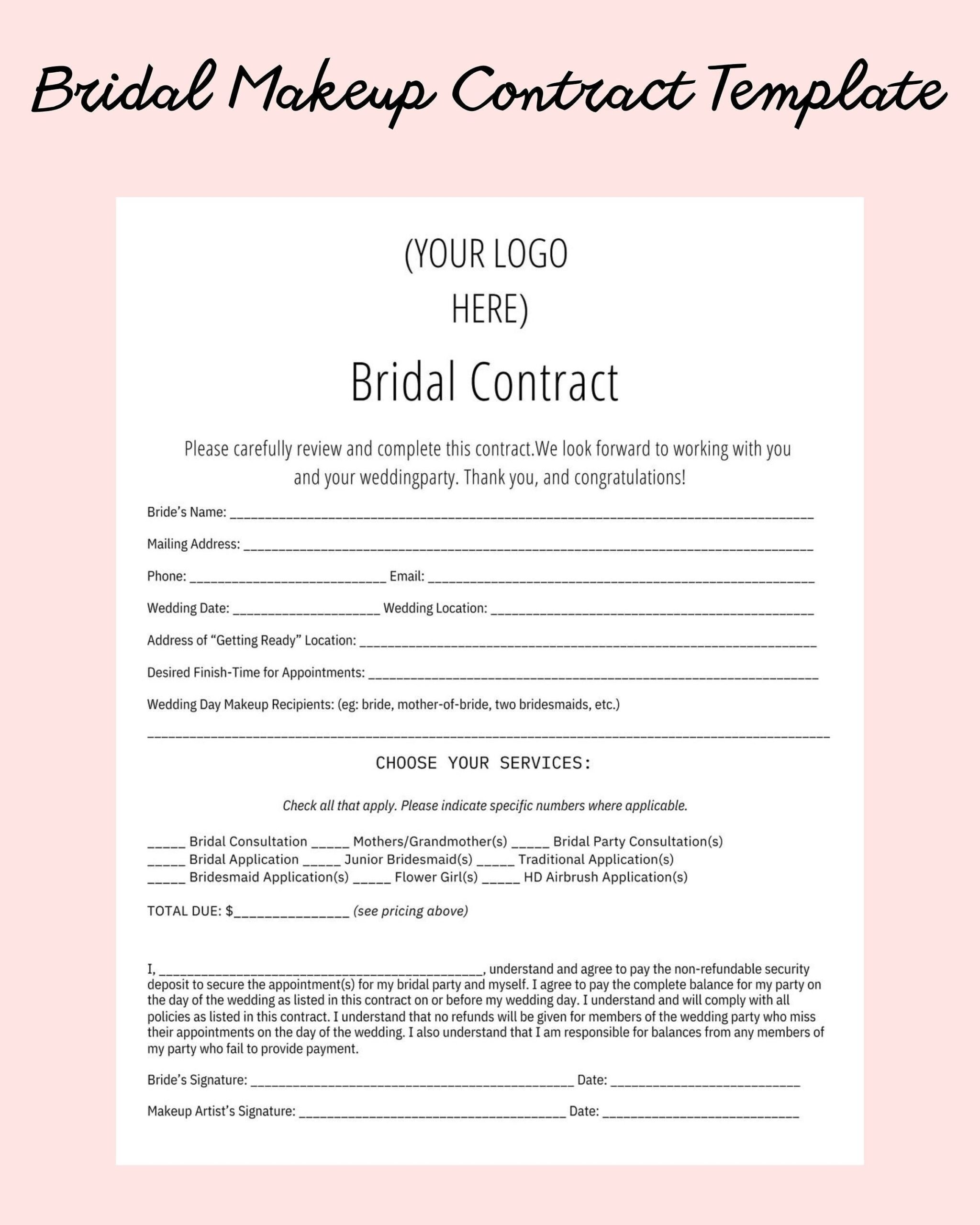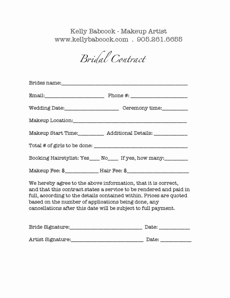 Easily Download and Print Printable Wedding Hair And Makeup Contract Template Free