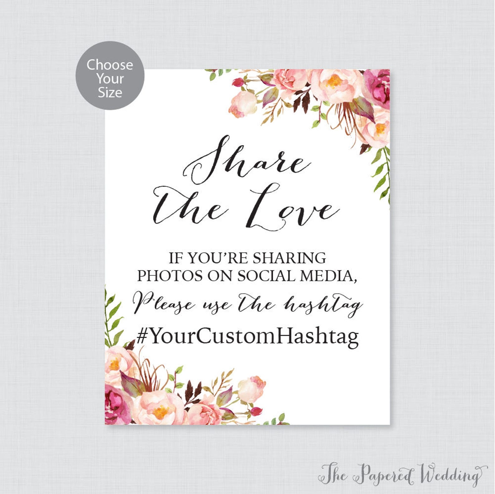 Printable Wedding Hashtag Sign Pink Floral Wedding Hashtag EtsyPrintable Wedding Hashtag Sign