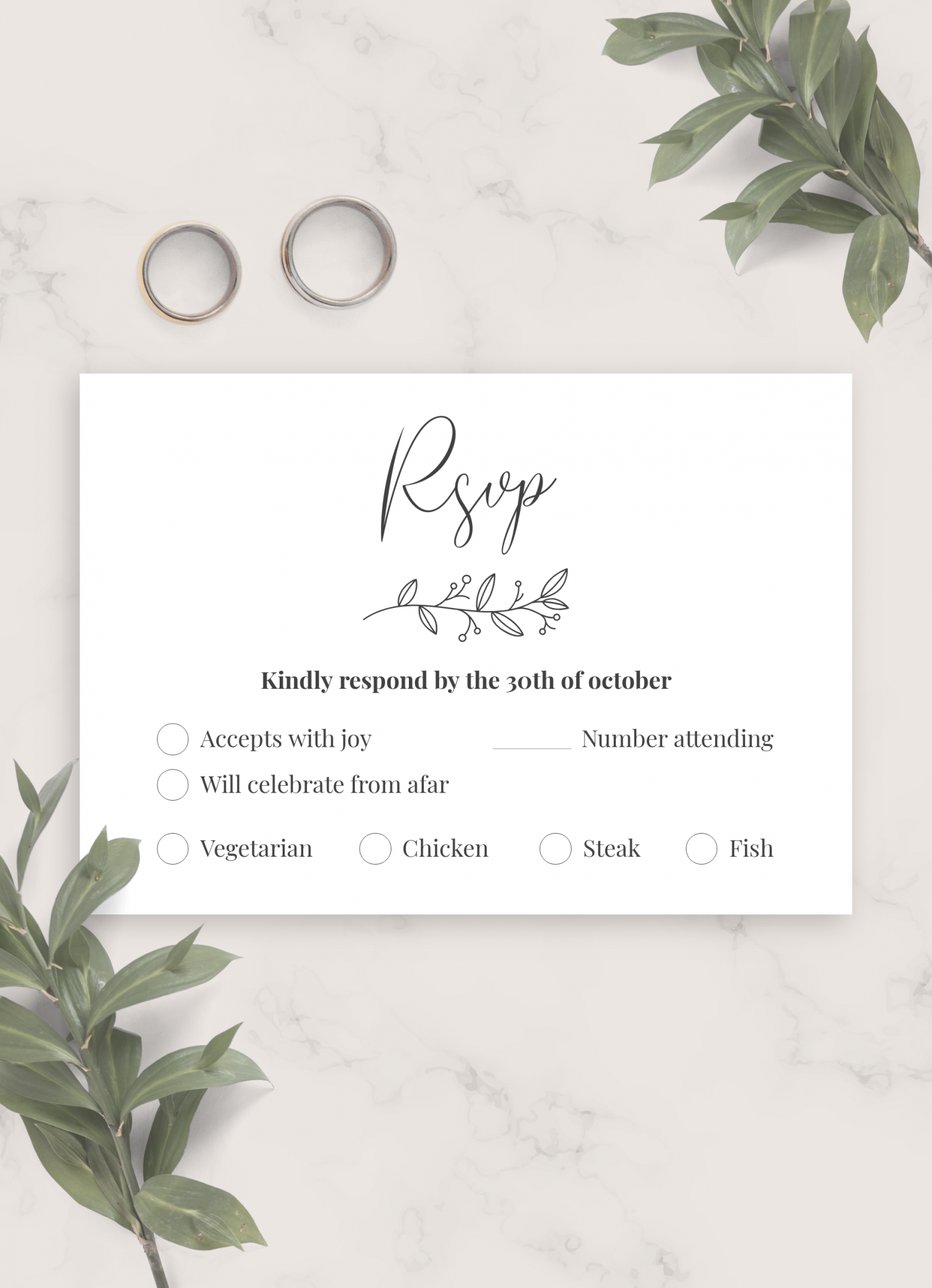 Download Printable Classic Elegant Wedding RSVP Card PDF