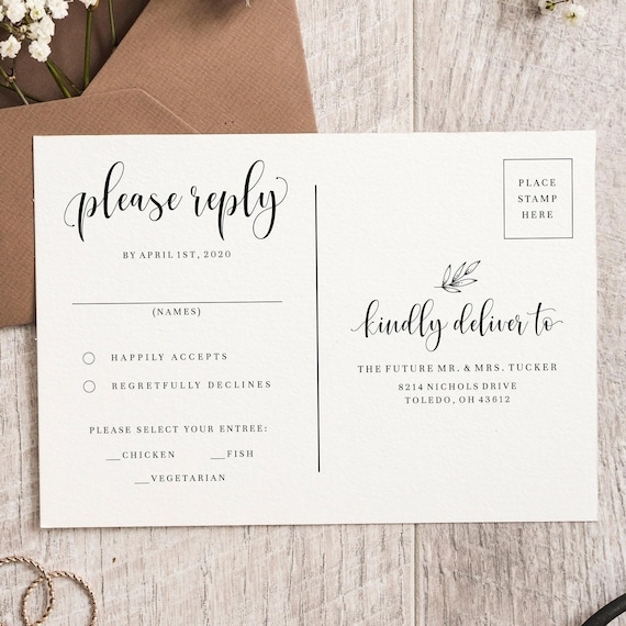 Paper Party Supplies RSVP Reply Card Printable Wedding Invitation