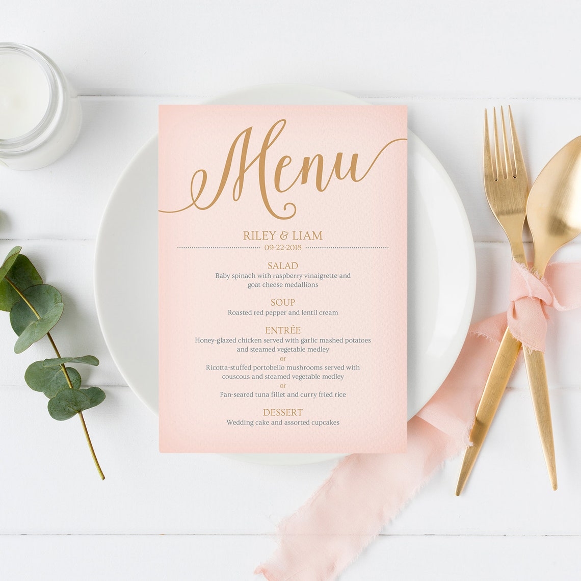 Printable Wedding Menu Cards Blush Pink And Gold Bridal EtsyPrintable Wedding Menu Cards Blush Pink And Gold Bridal Etsy