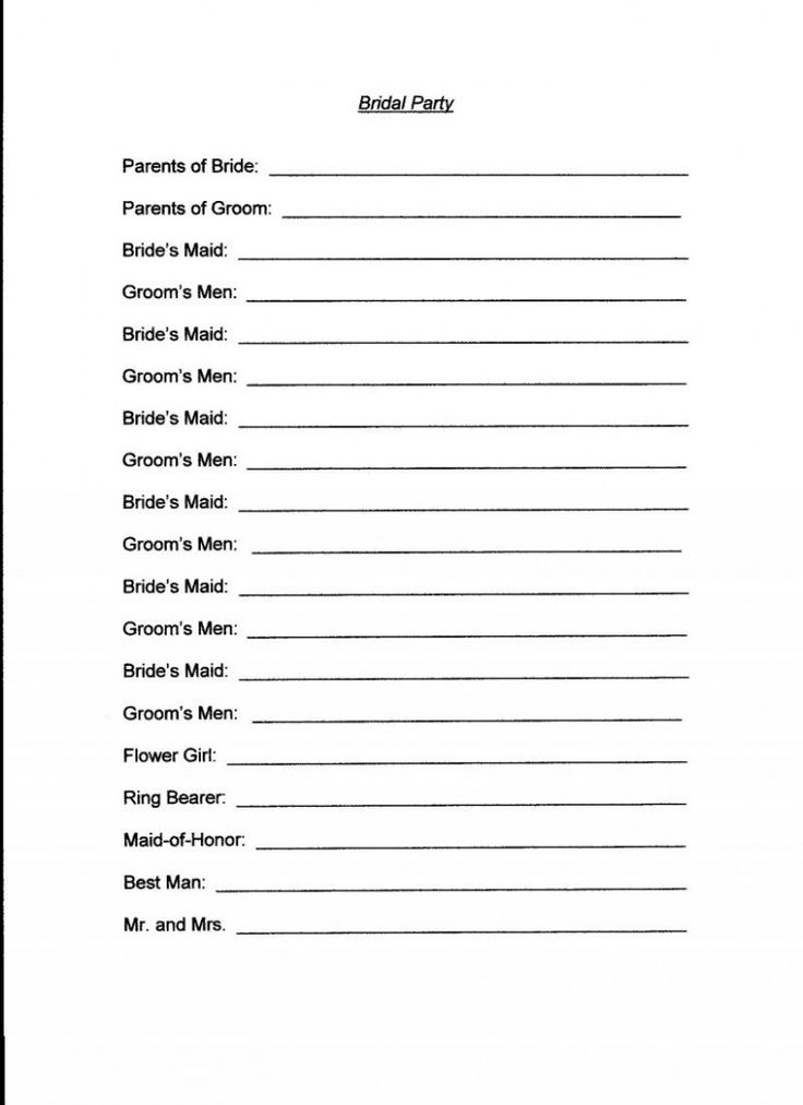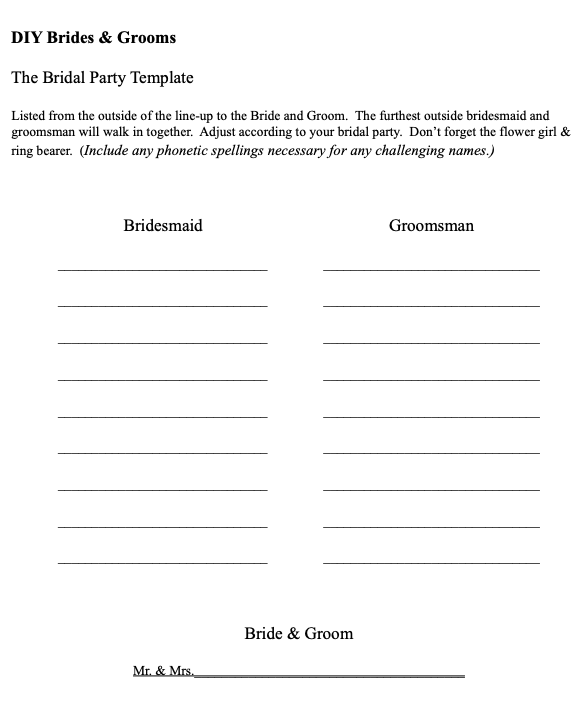Printable Wedding Party Lineup Template