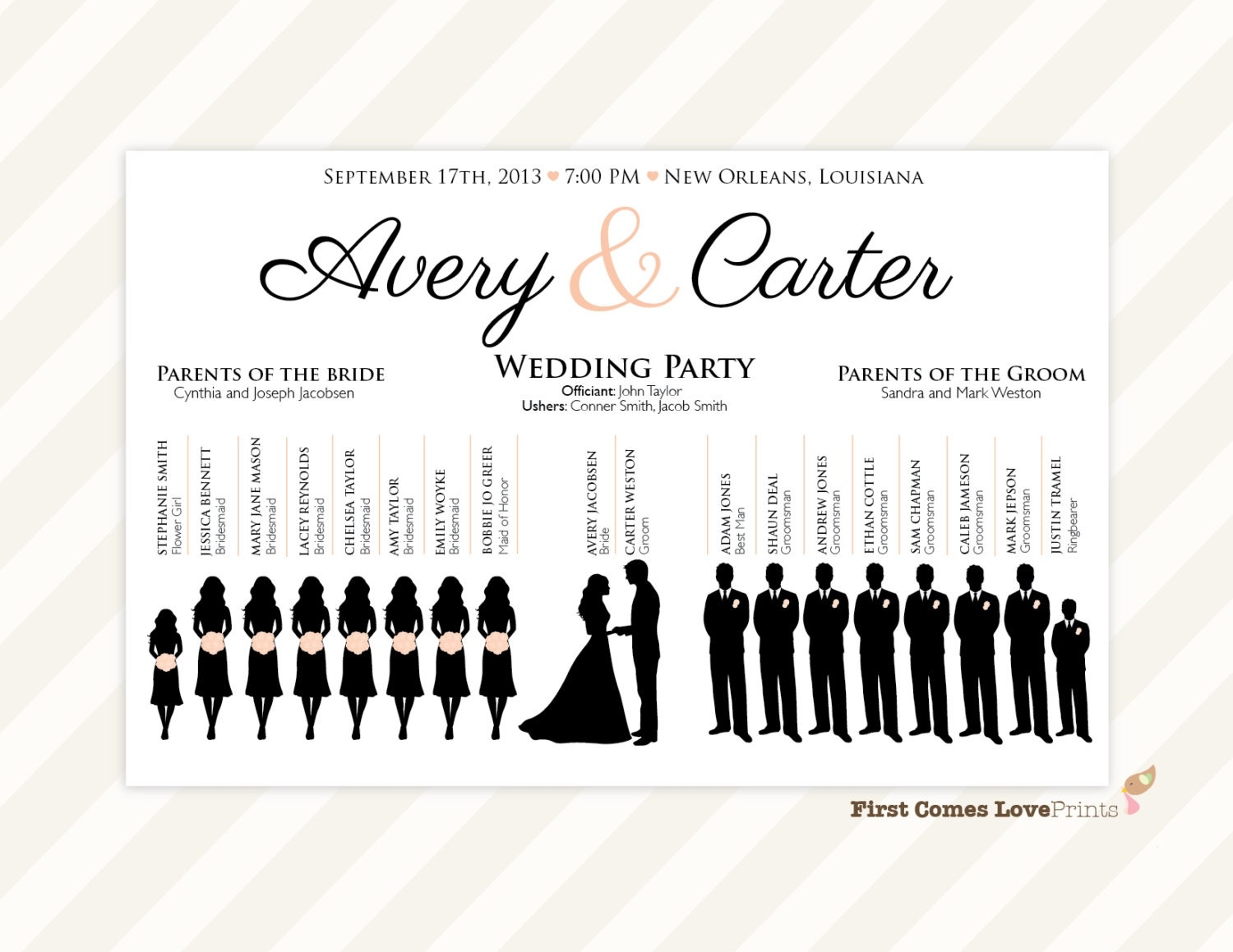 Save and Print Printable Wedding Party Lineup Template