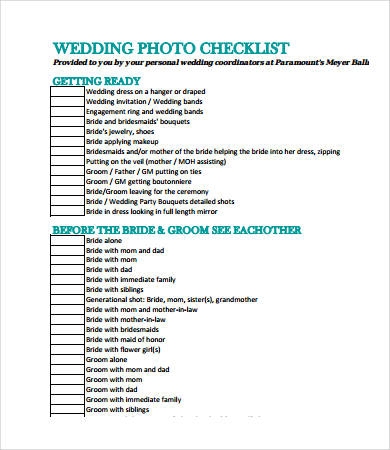 Printable Wedding Photography Checklist Pdf
