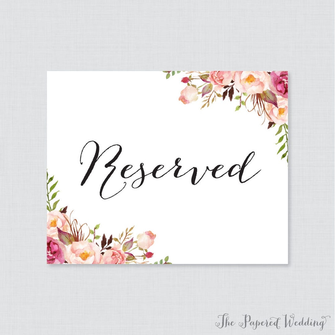 Reserved Wedding Signs Printable Elegant By OptiqalDesigns