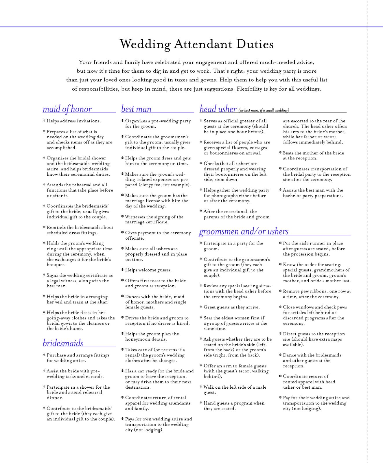 Printable Wedding Roles ListPrintable Wedding Roles List