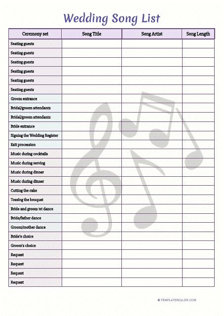Wedding Song List Template Download Printable PDF Templateroller