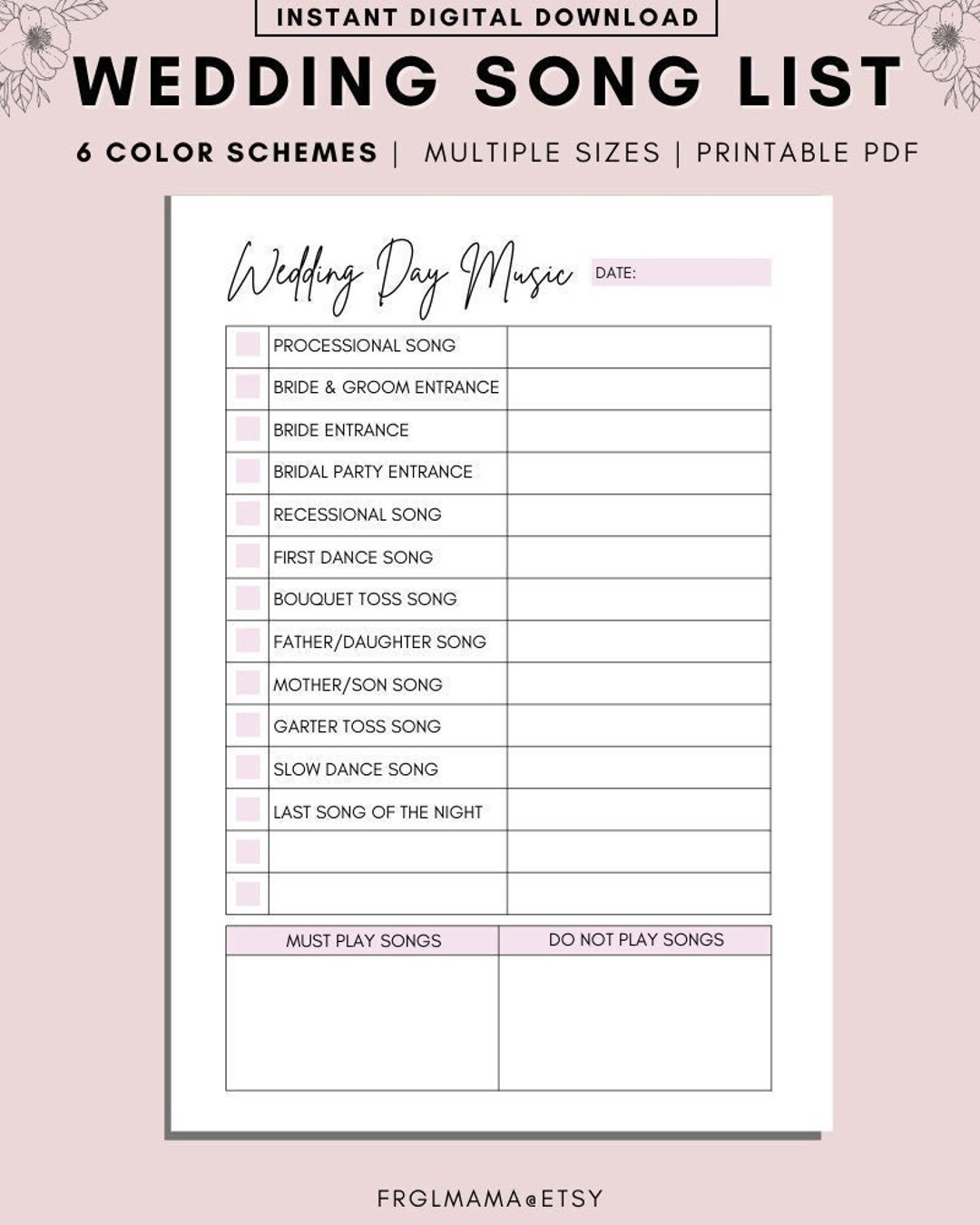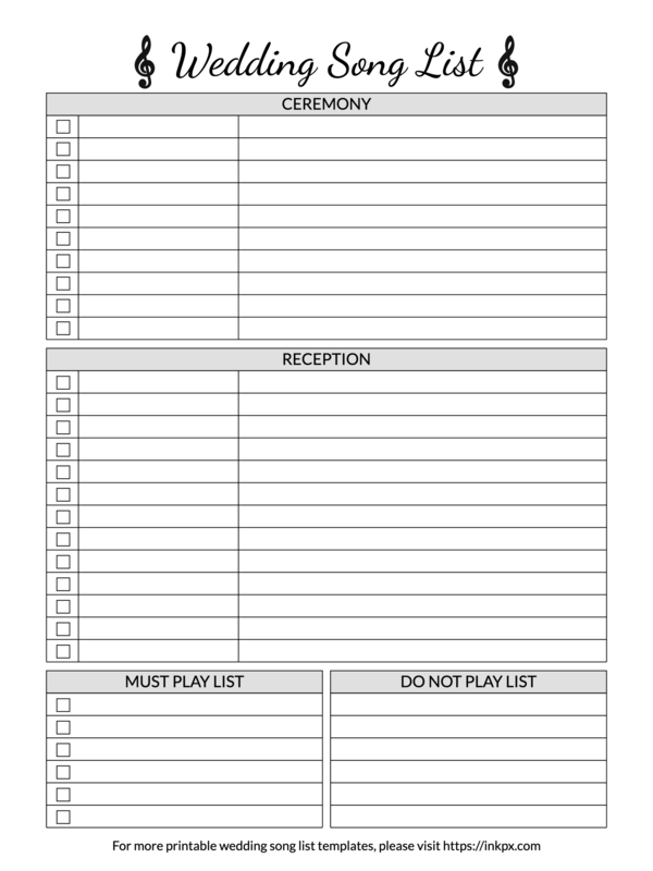 Printable Wedding Song List Templates In PDF PNG And JPG Formats InkPx
