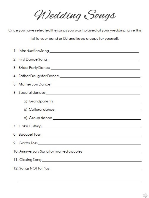 Printable Wedding Song List Template Printable Templates